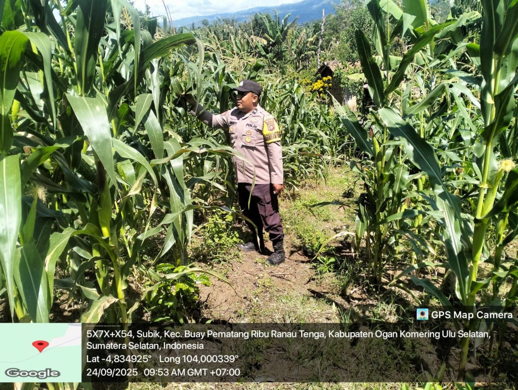 Bhabinkamtibmas Polsek Banding Agung Aipda Suswanto melaksanakan giat pengecekan lahan tanaman jagung milik warga Si Humas 25 September 2025 09:29