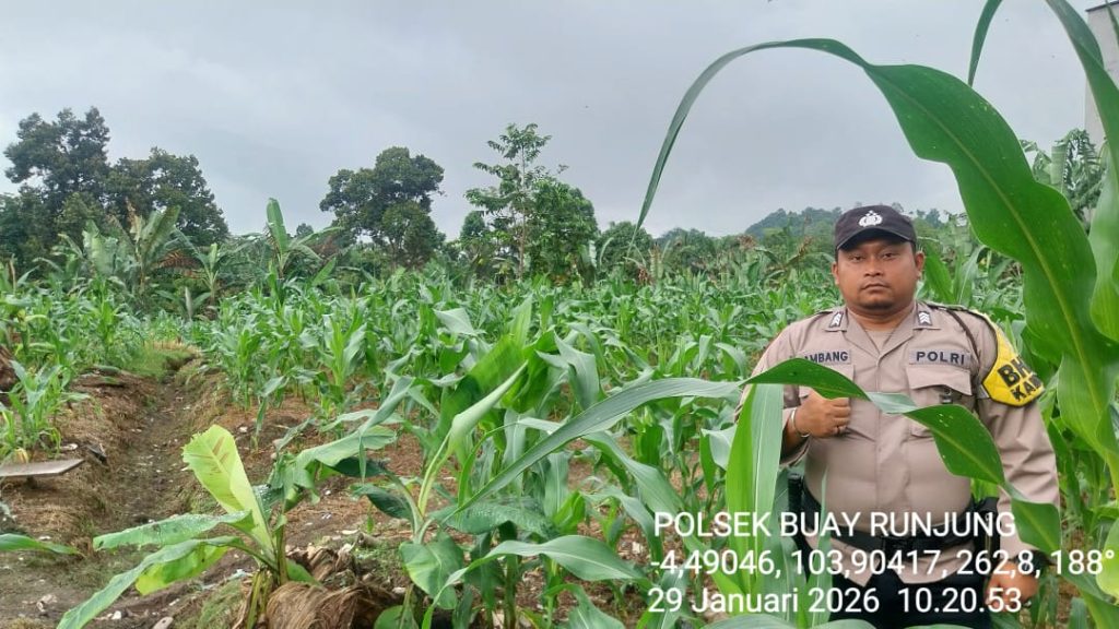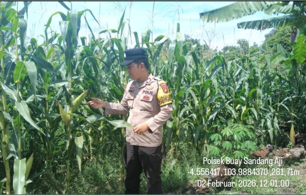 Perkuat Ketahanan Pangan, Bhabinkamtibmas Buay Pemaca Pantau Lahan Jagung di Desa Binaan Si Humas 1 Februari 2026 14:23