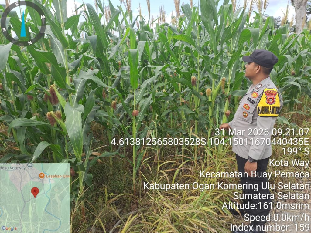 Bhabinkamtibmas Polsek Muaradua Cek Tanaman Jagung Warga, Dukung Ketahanan Pangan Si Humas 16 April 2026 12:24