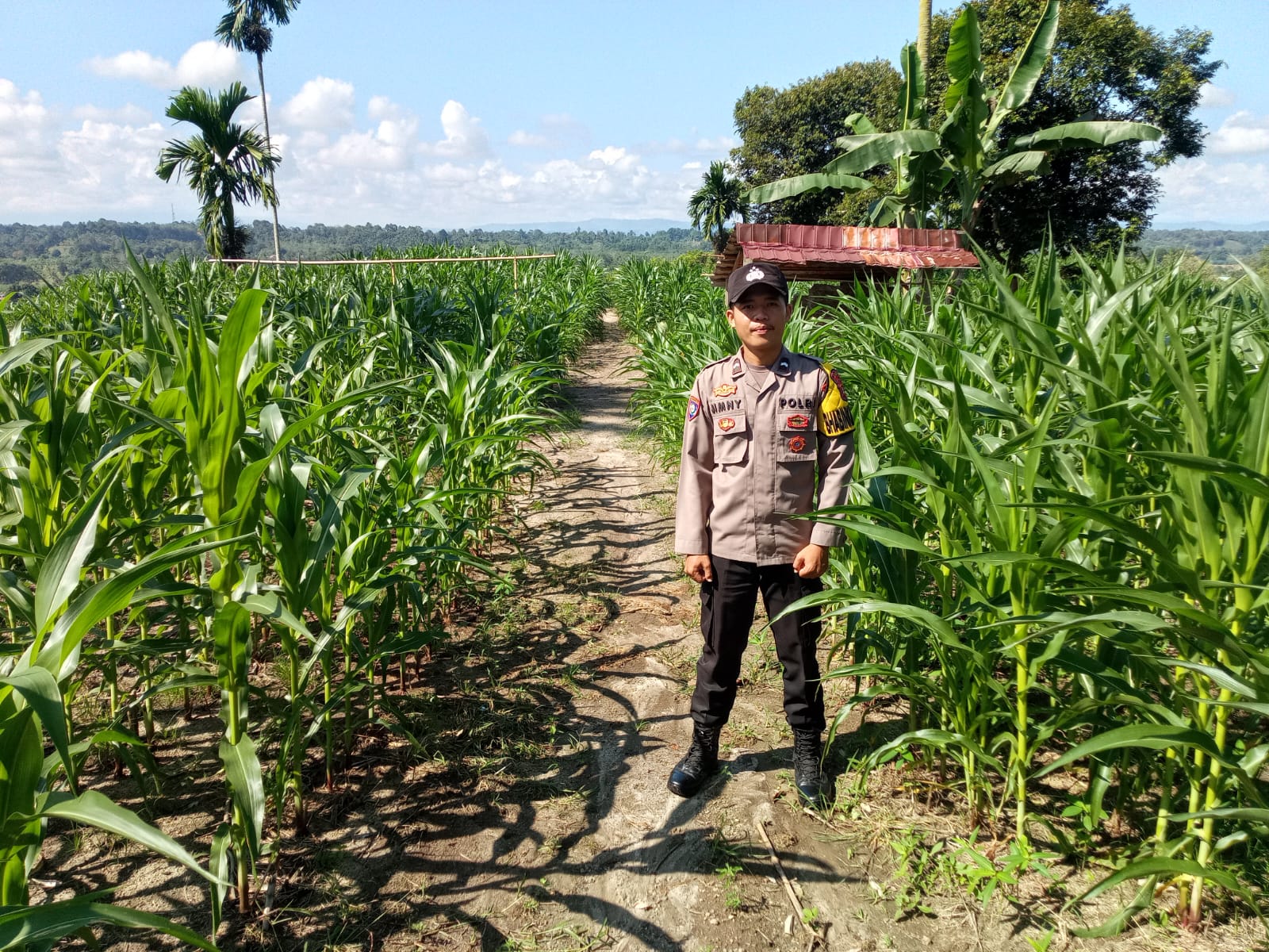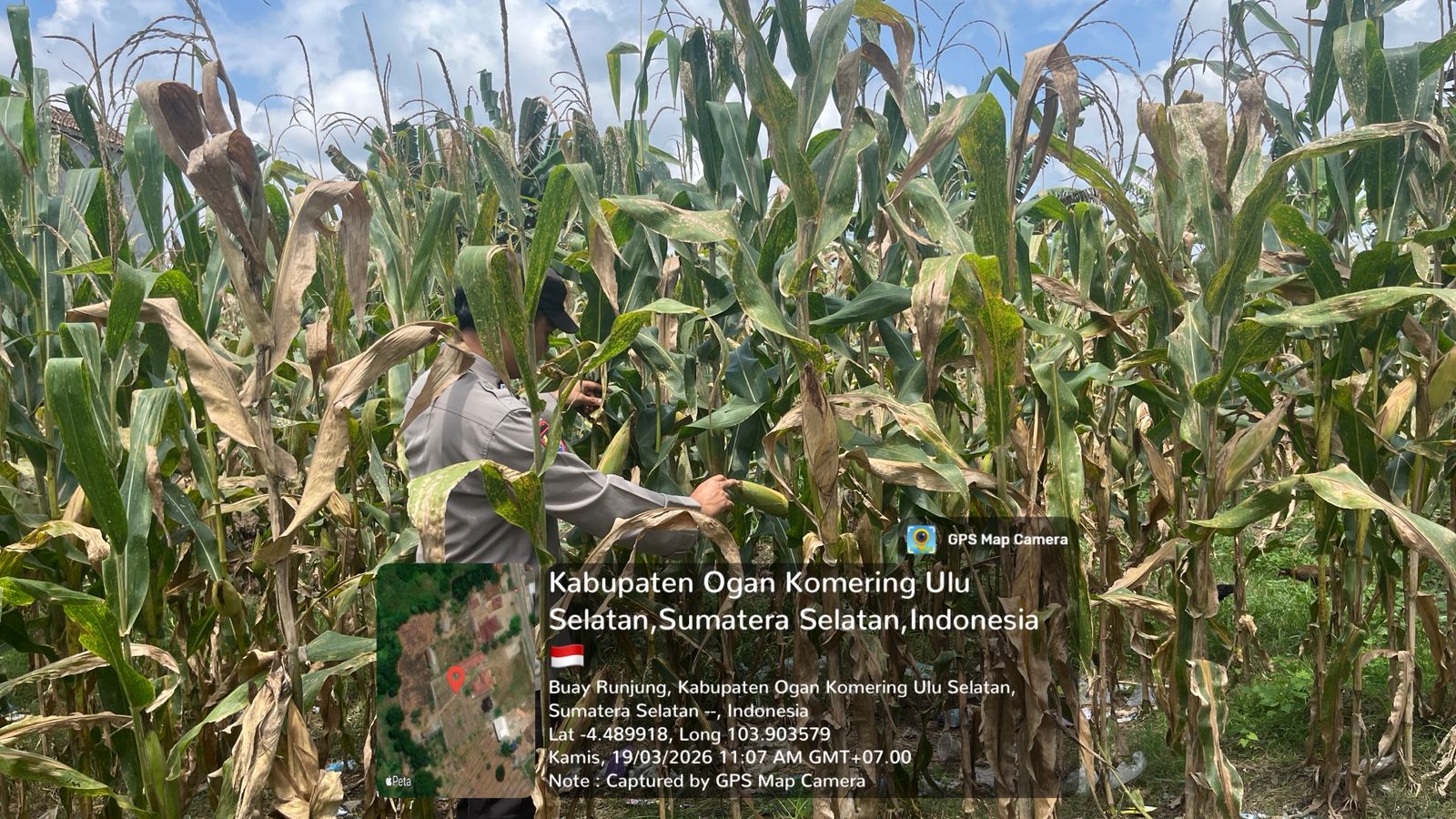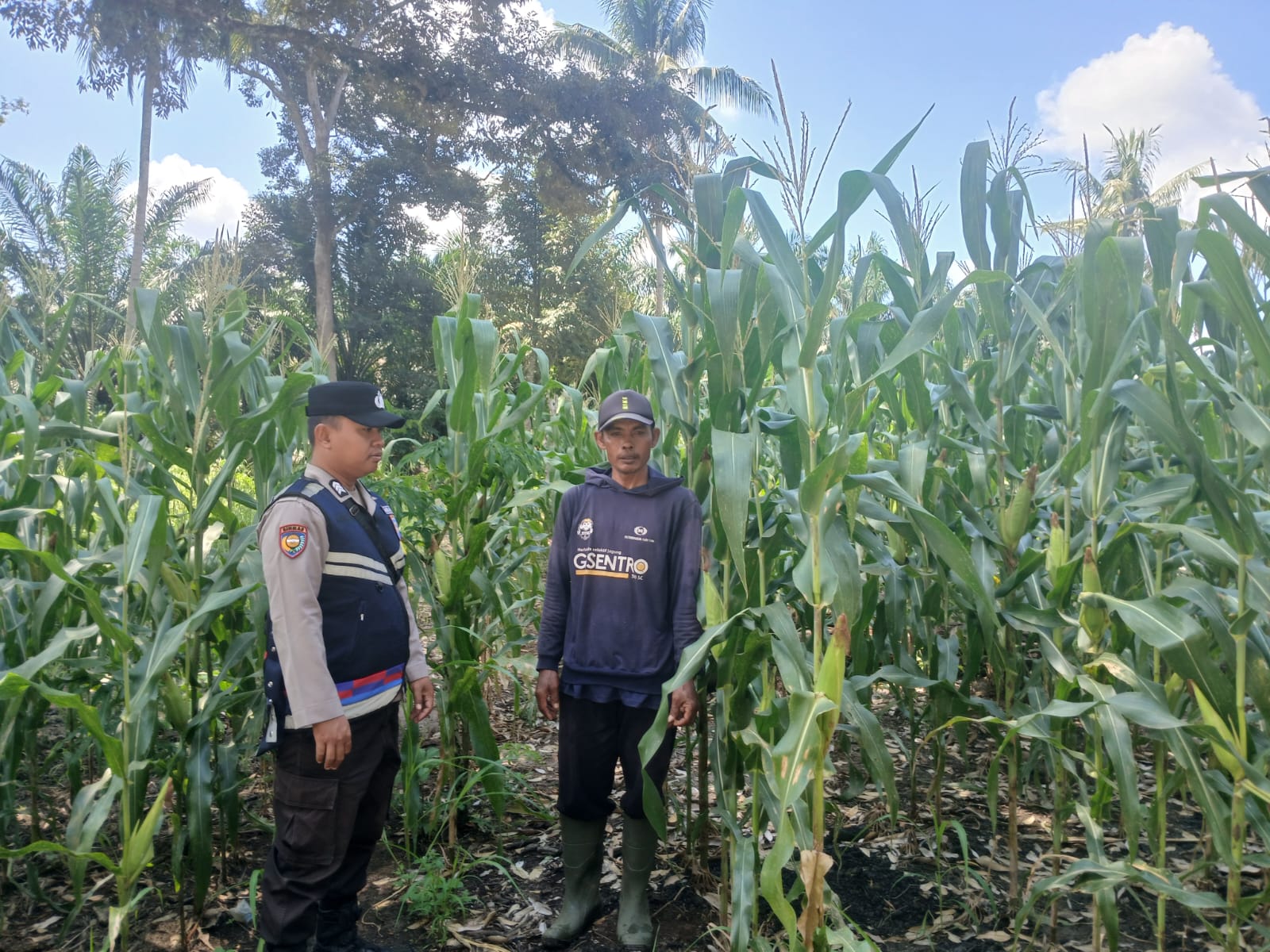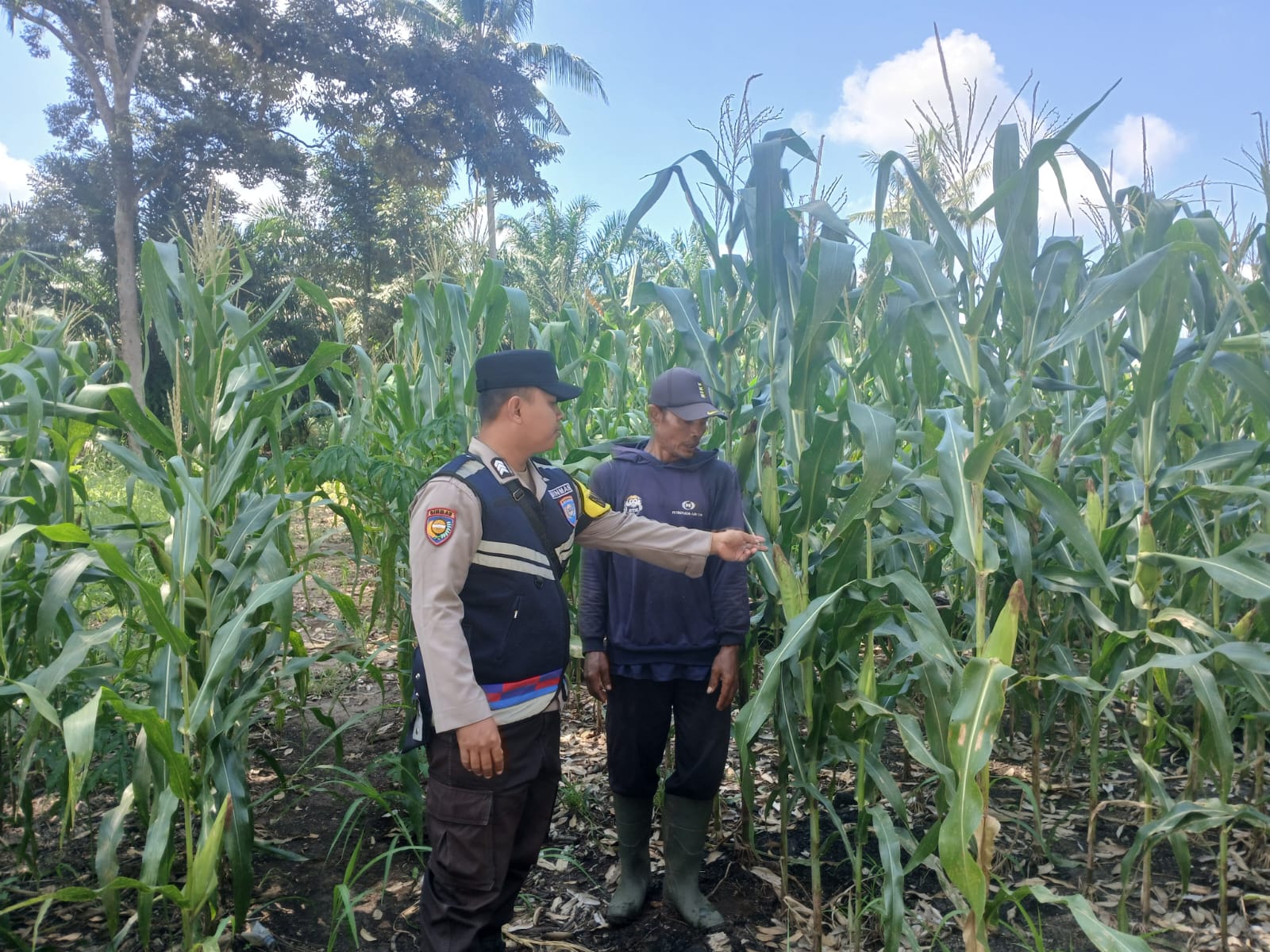Bhabinkamtibmas Polsek Simpang Martapura Dukung Ketahanan Pangan Melalui Pengecekan Lahan Jagung