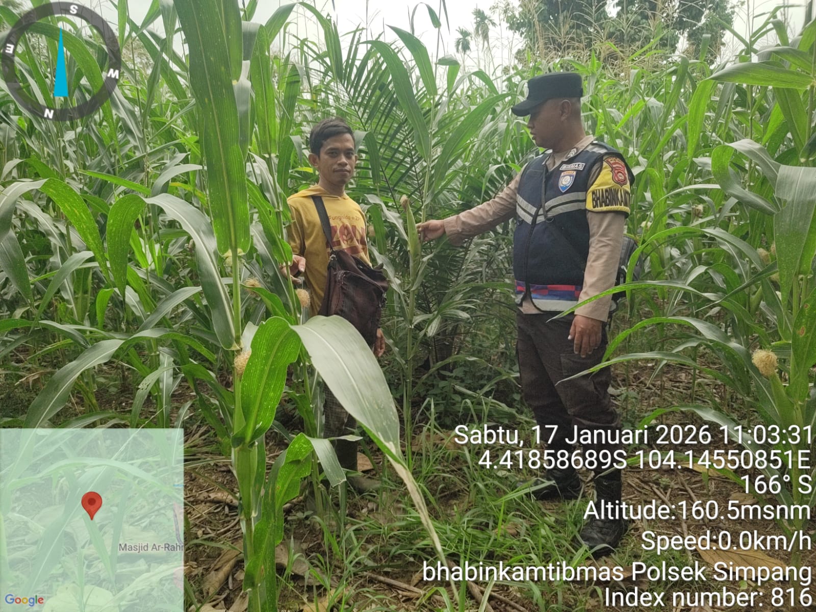 Bhabinkamtibmas Polsek Simpang Martapura Laksanakan Pengecekan Lahan Jagung di Desa Simpang Agung