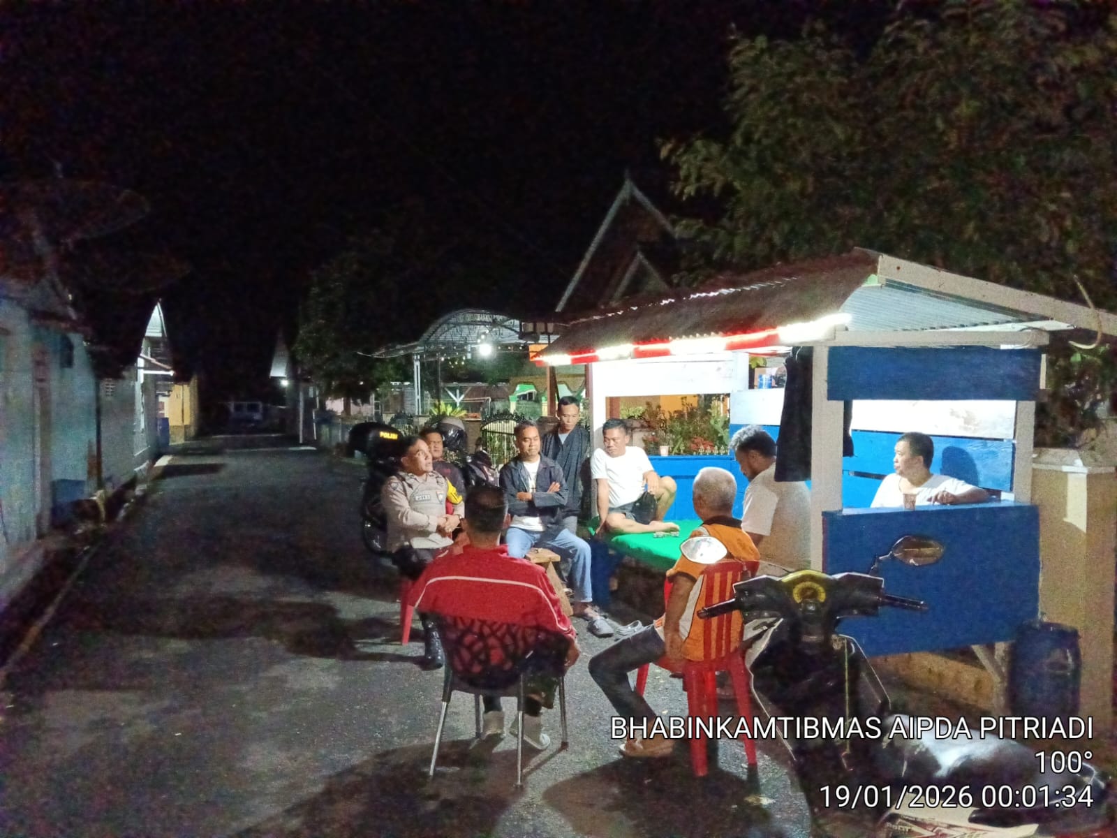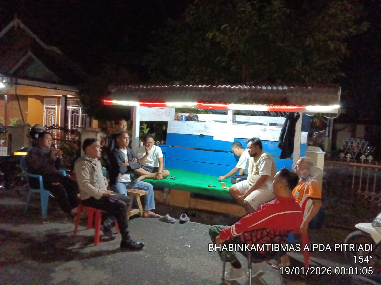 Bhabinkamtibmas Polsek Muaradua, AIPDA Pitriadi, melaksanakan kegiatan sambang Pos Satkamling pada Minggu malam, 18 Januari 2026, sekitar pukul 23.30 WIB