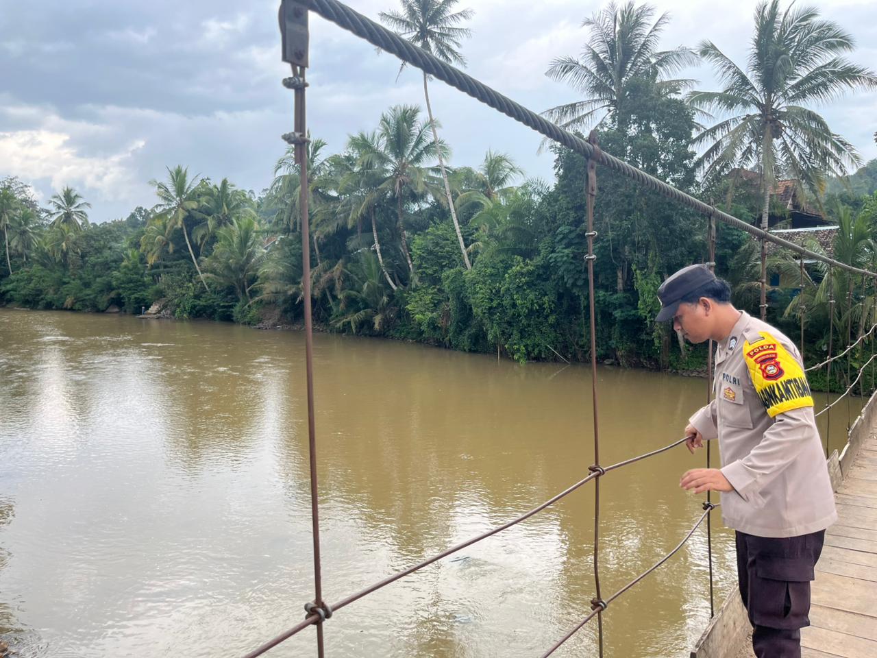 OKU Selatan – Guna memastikan kondisi wilayah tetap aman dari potensi banjir akibat curah hujan yang cukup tinggi, Bhabinkamtibmas Polsek