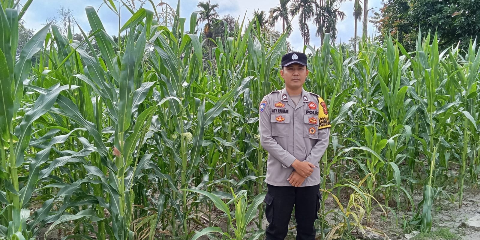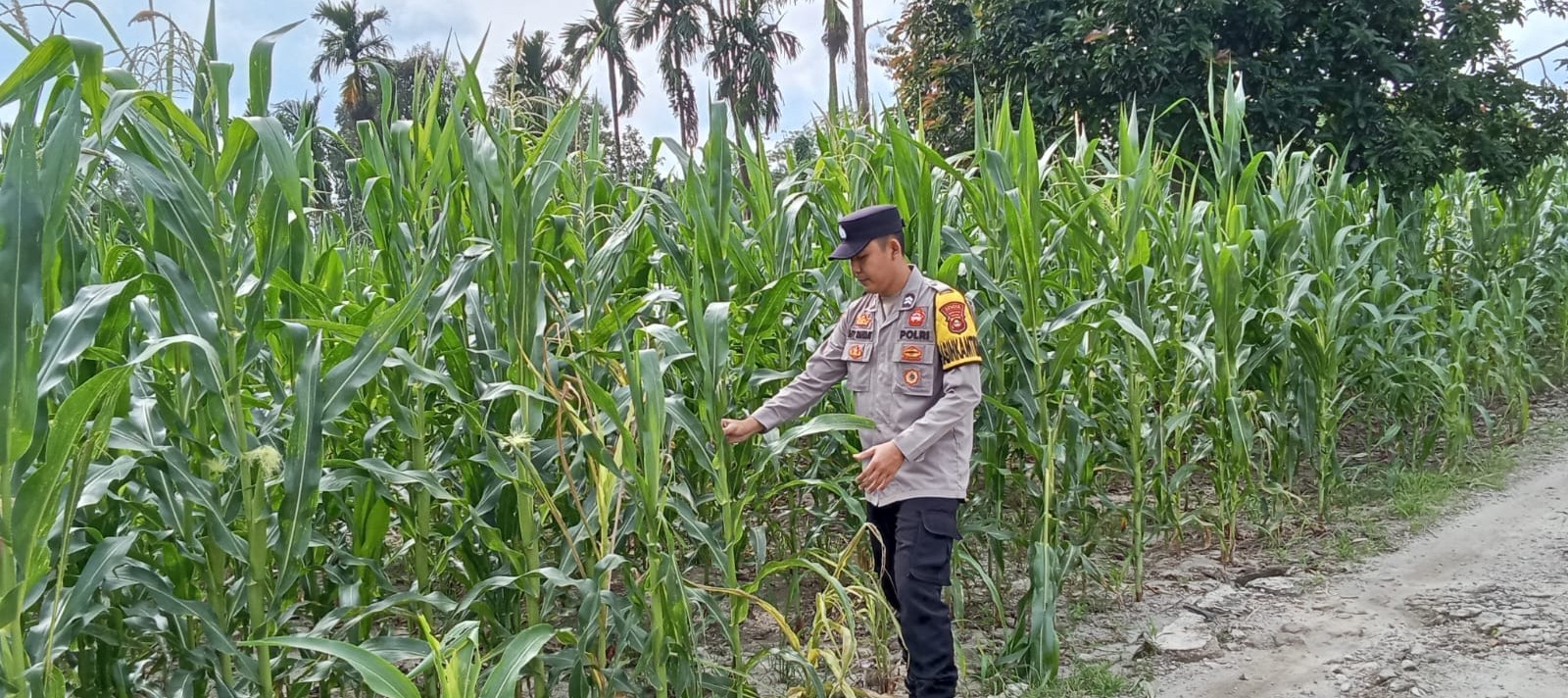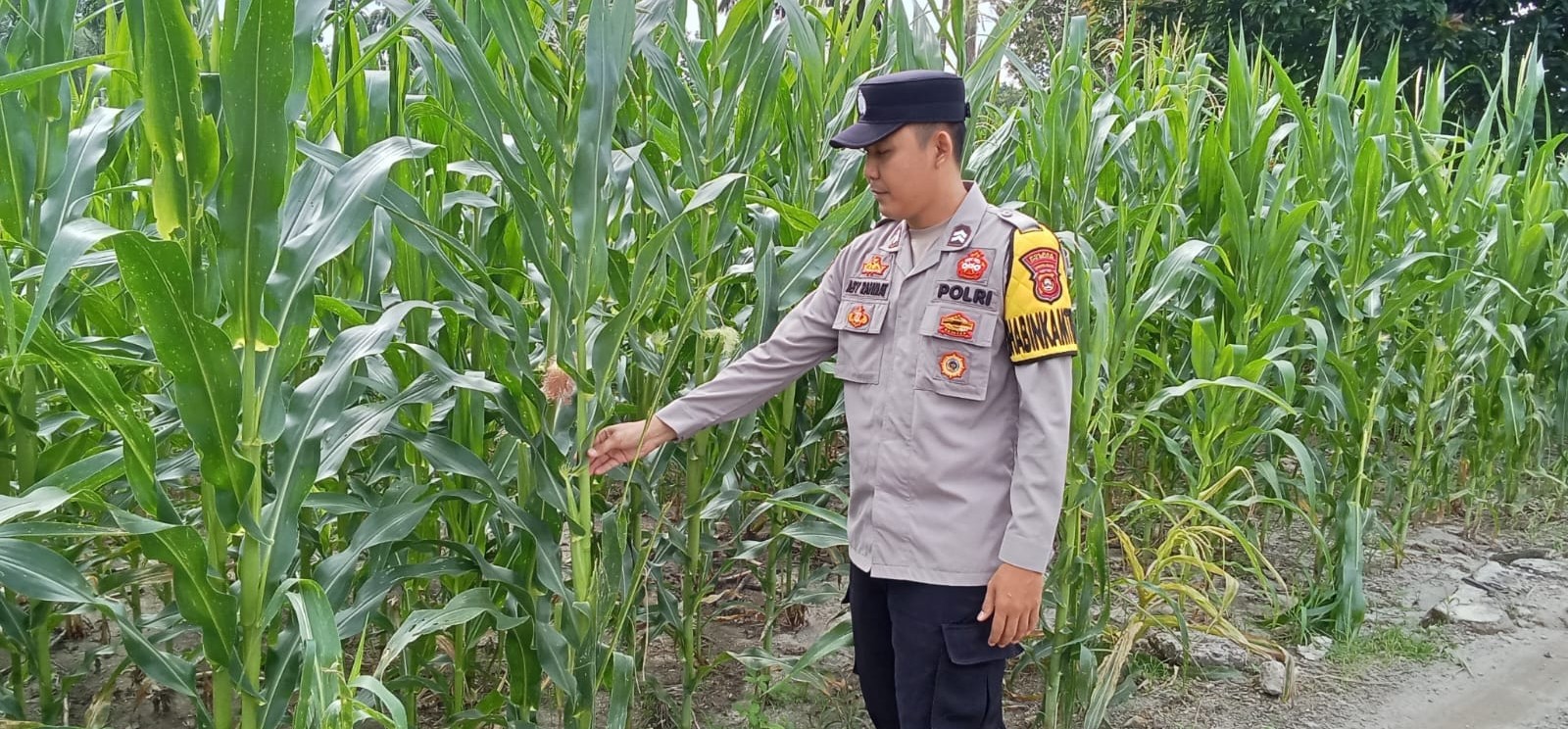 Bhabinkamtibmas Polsek Buay Pemaca Briptu Aby Rahmat melaksanakan kegiatan pengecekan lahan tanaman jagung