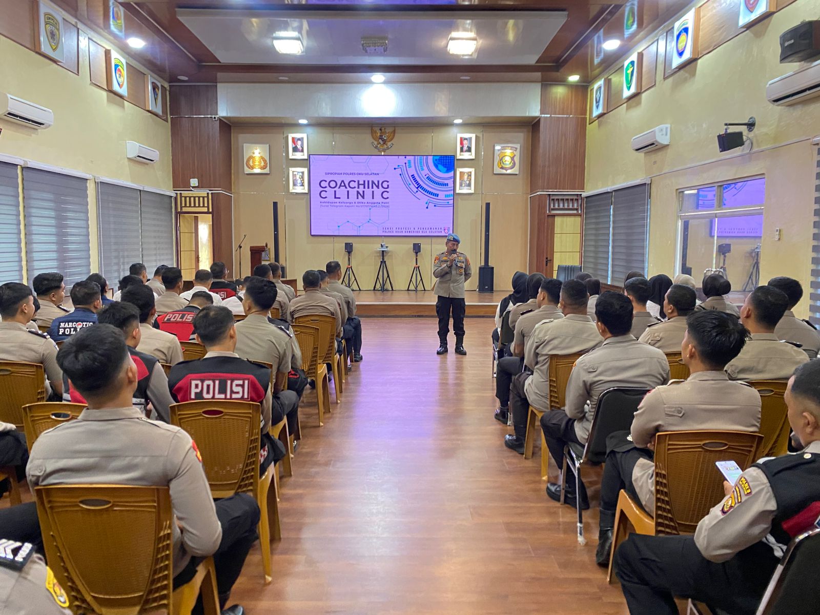 Pada hari Rabu, 4 Maret 2026, Polres OKU Selatan (OKUS) melaksanakan kegiatan rutin coaching clinic yang bertempat di Aula Mapolres