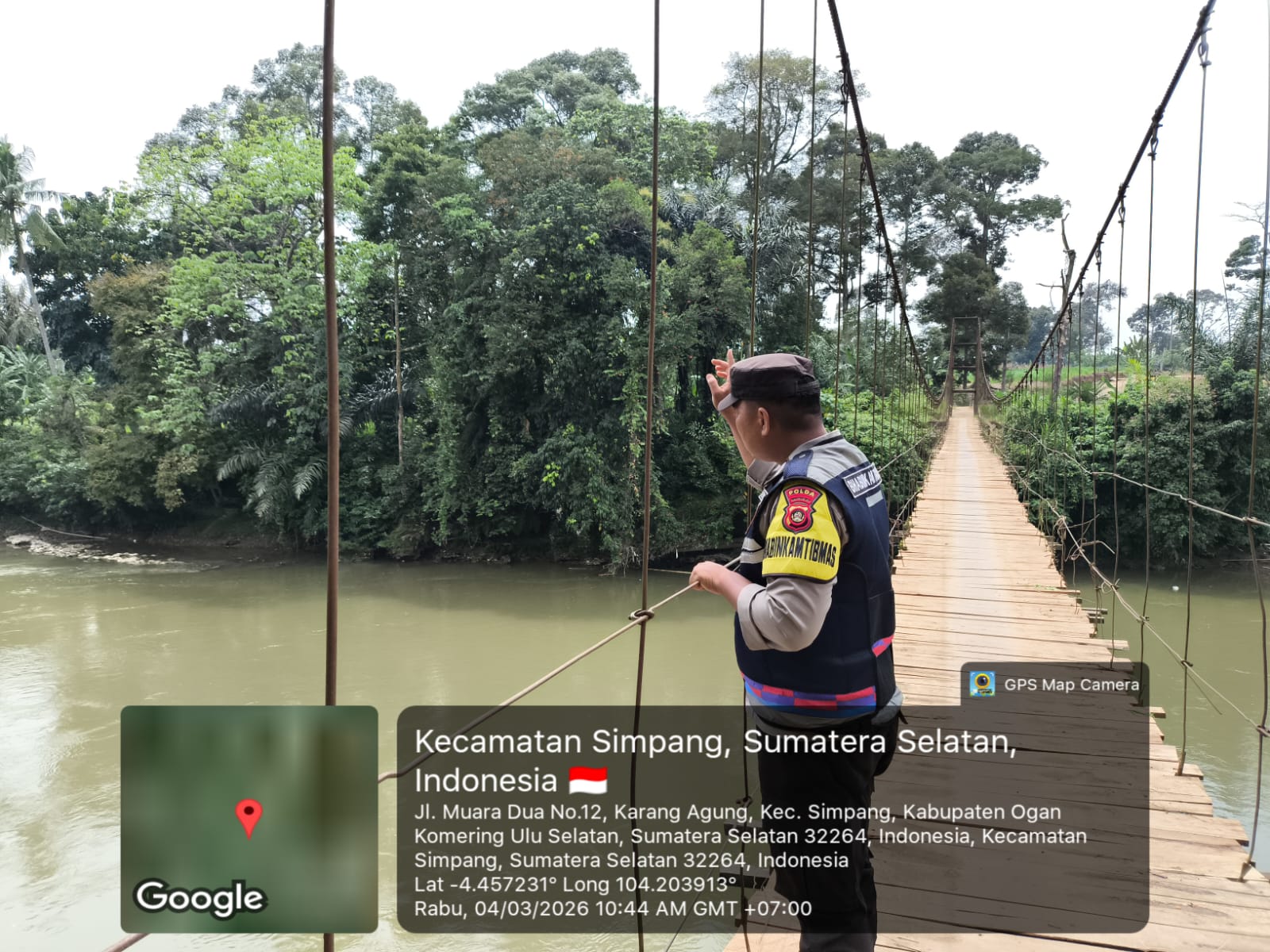 Sebagai upaya preventif menghadapi potensi bencana alam, BRIGPOL Dora Saputra selaku Bhabinkamtibmas Polsek Simpang melaksanakan monitoring update terkini di kawasan
