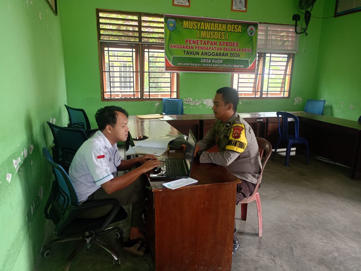 Rabu, 04 Maret 2026, Bhabinkamtibmas Polsek Muaradua BRIPDA M. Fauzan Azzami melaksanakan kegiatan sambang dan silaturahmi di Kantor Desa Ruos,