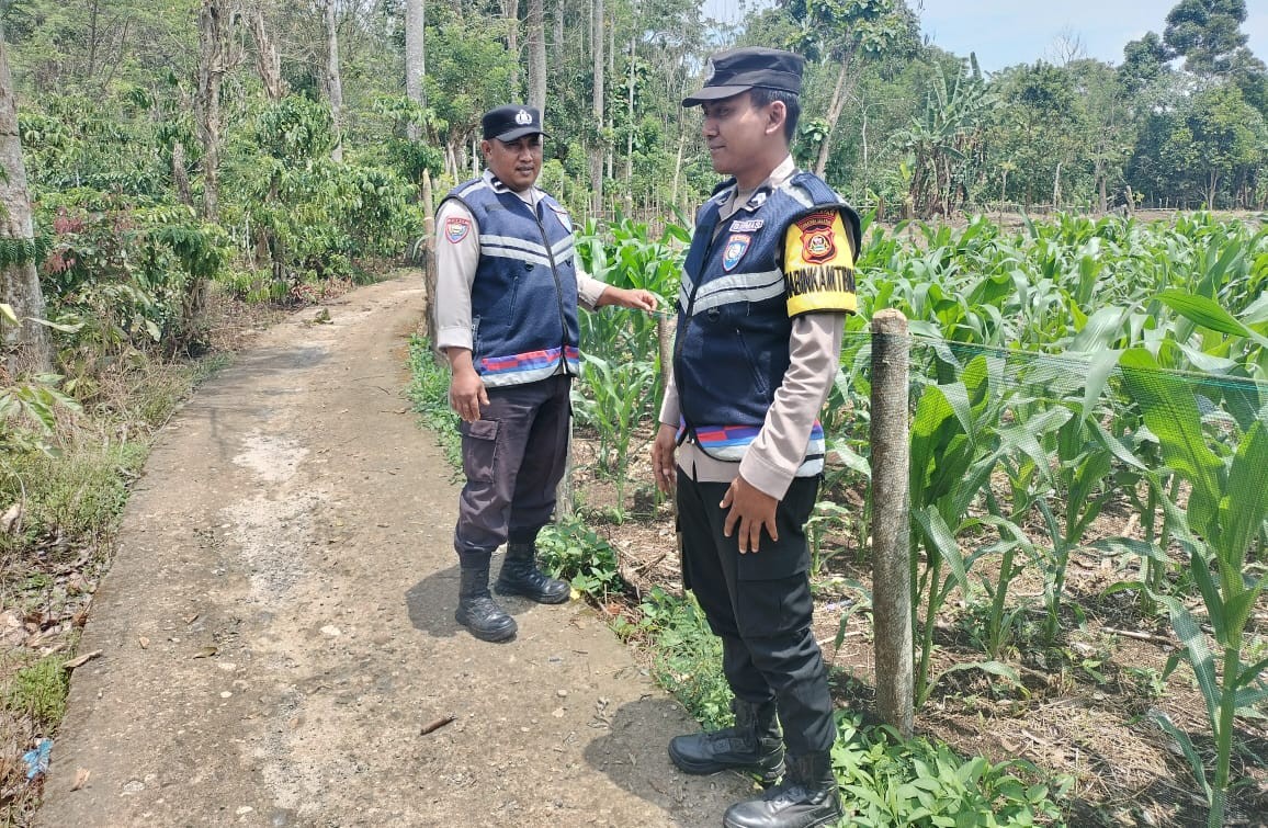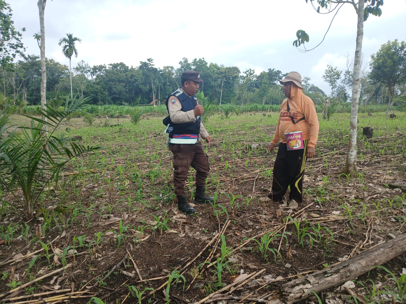 Bhabinkamtibmas Polsek Banding Agung Briptu Wira Graha Negara, S.H. melaksanakan kegiatan pengecekan lahan tanaman jagung milik warga di Desa Hangkusa,