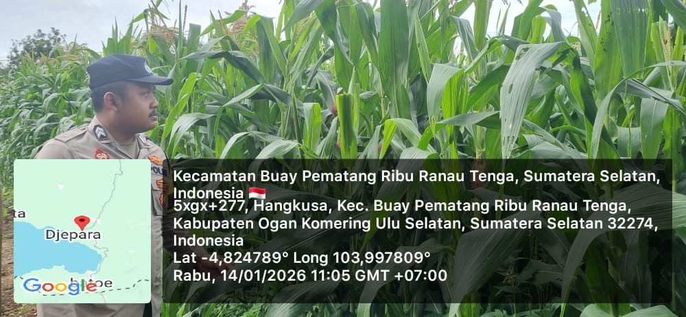 pengecekan lahan tanaman jagung milik warga di Desa Hangkusa, Kecamatan BPR Ranau Tengah, Kabupaten OKU Selatan oleh Bhabinkamtibmas Polsek Banding Agung