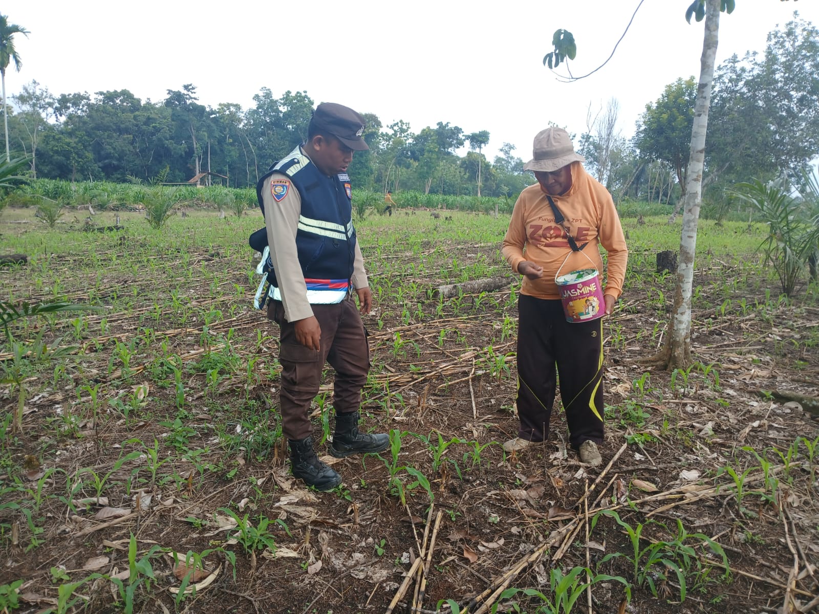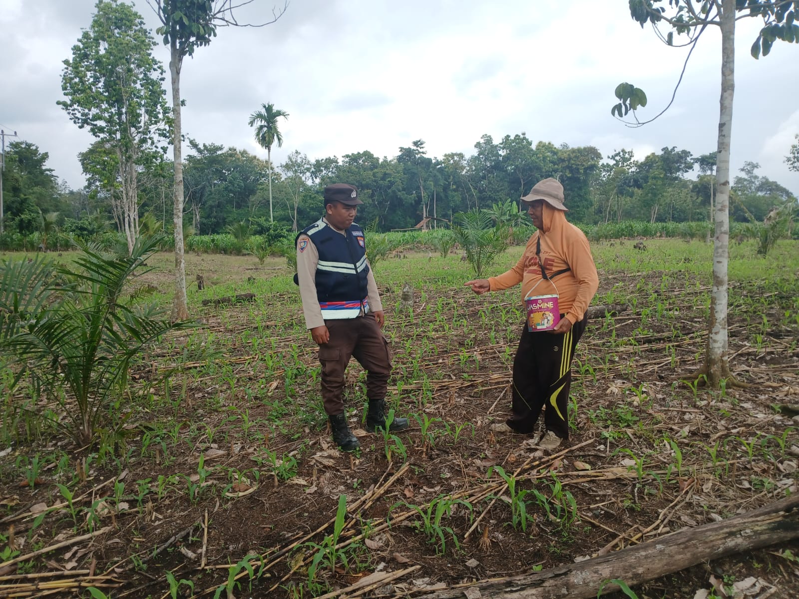 Bhabinkamtibmas Polsek Banding Agung Briptu Wira Graha Negara, S.H. melaksanakan kegiatan pengecekan lahan tanaman jagung milik warga