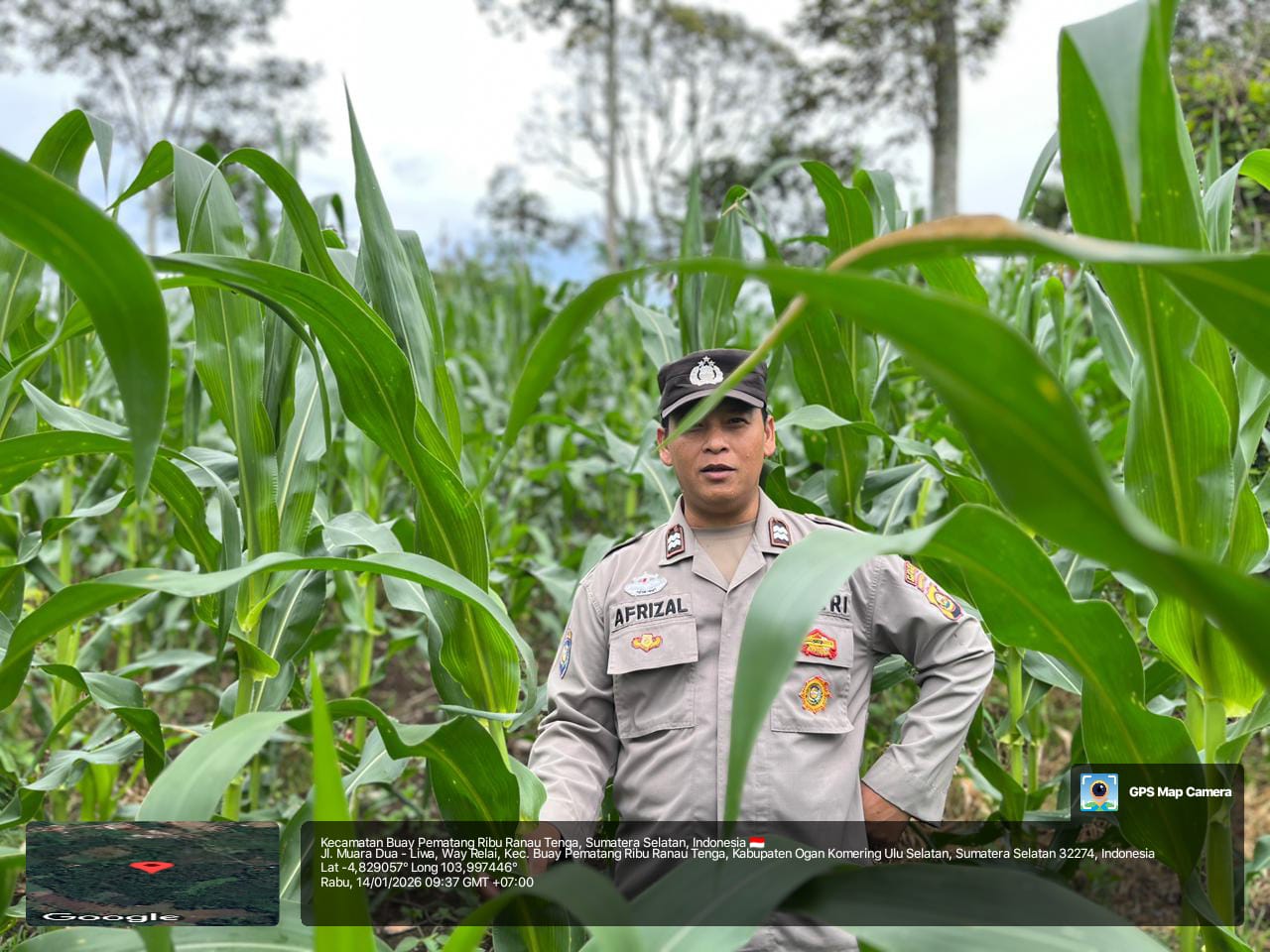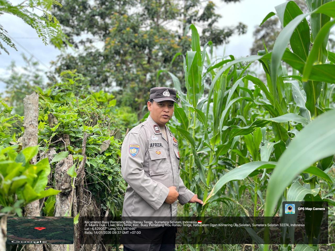 Bhabinkamtibmas Polsek Simpang Martapura Optimalkan Ketahanan Pangan Lewat Pengecekan Jagung
