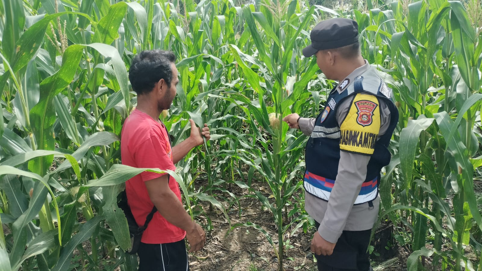 Bhabinkamtibmas Polsek Simpang Martapura Lakukan Pengecekan Lahan Jagung, Dukung Program Ketahanan Pangan