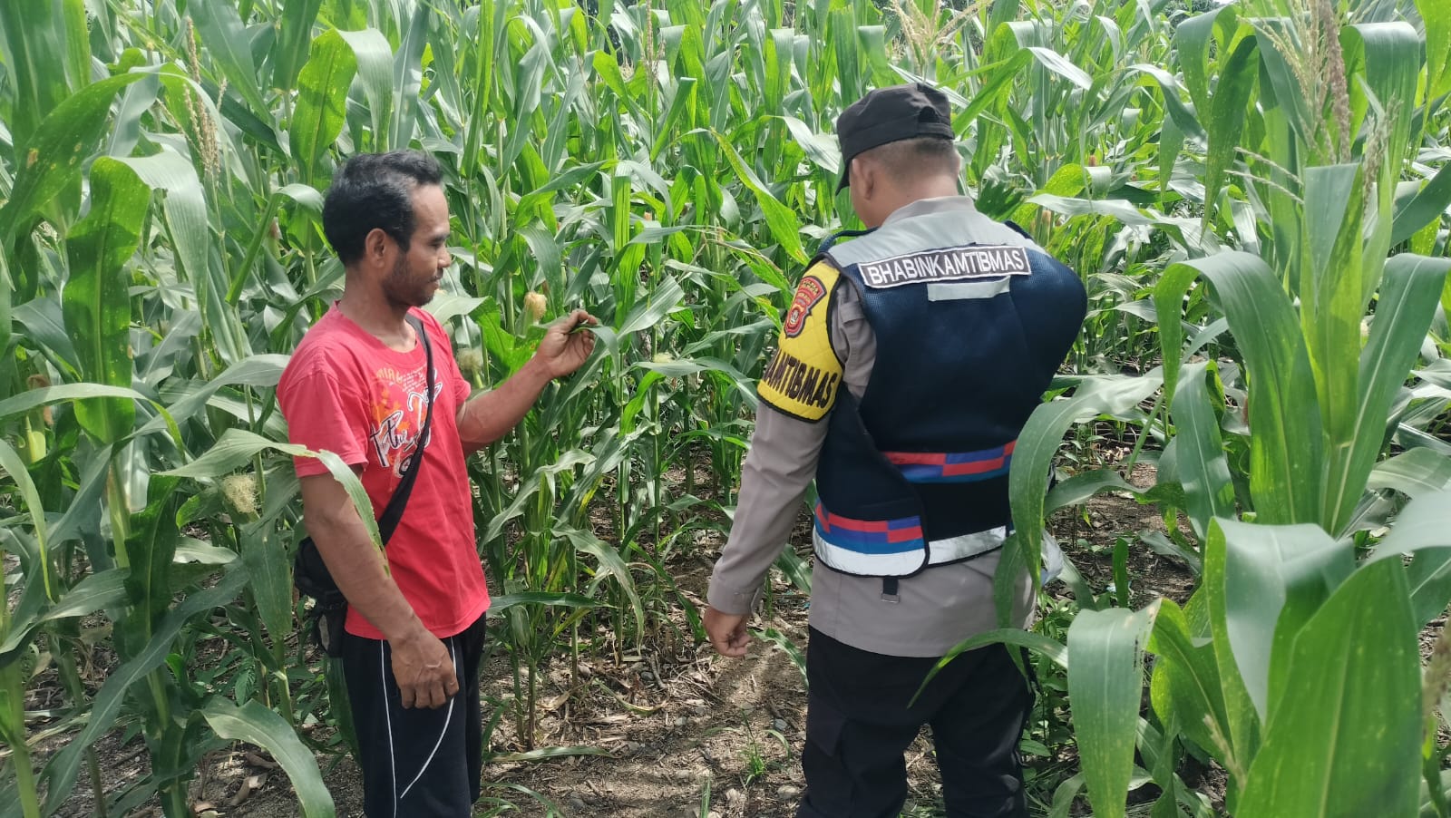 Bhabinkamtibmas Polsek Buay Runjung Lakukan Pengecekan Tanaman Jagung di Desa Binaan