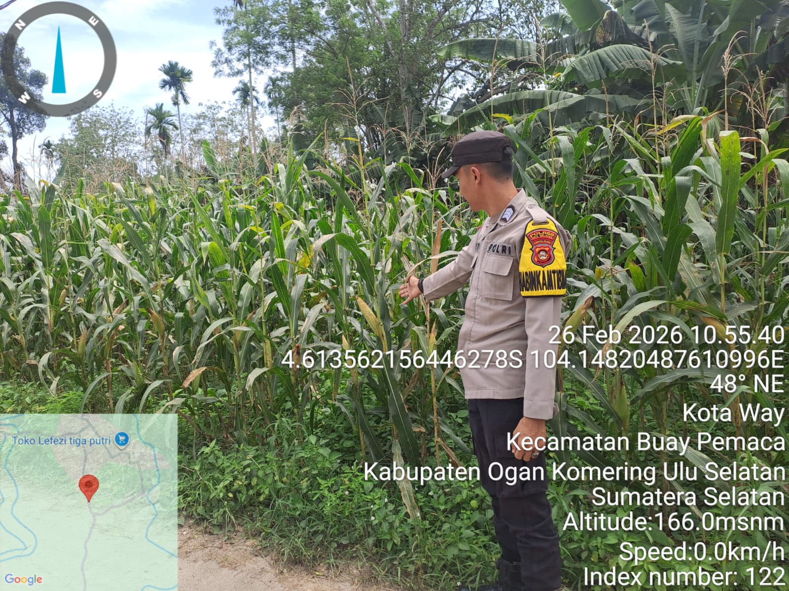 Bhabinkamtibmas Polsek Simpang Martapura Lakukan Pengecekan Lahan Jagung, Dukung Program Ketahanan Pangan