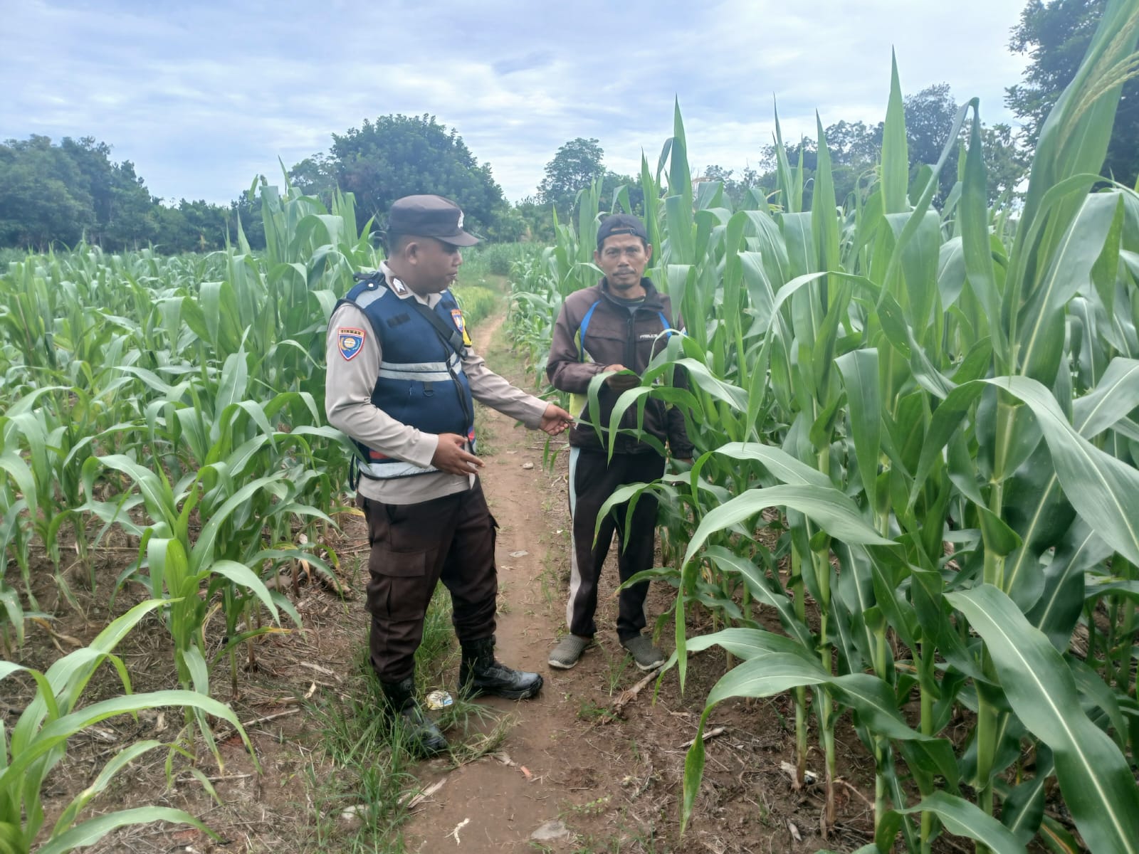 Bhabinkamtibmas Polsek Simpang Martapura, Brigpol Ahmad Susanto, melaksanakan kegiatan pengecekan lahan tanaman jagung yang berada di Desa Gemiung, Kecamatan Buana Pemaca, Kabupaten OKU Selatan.