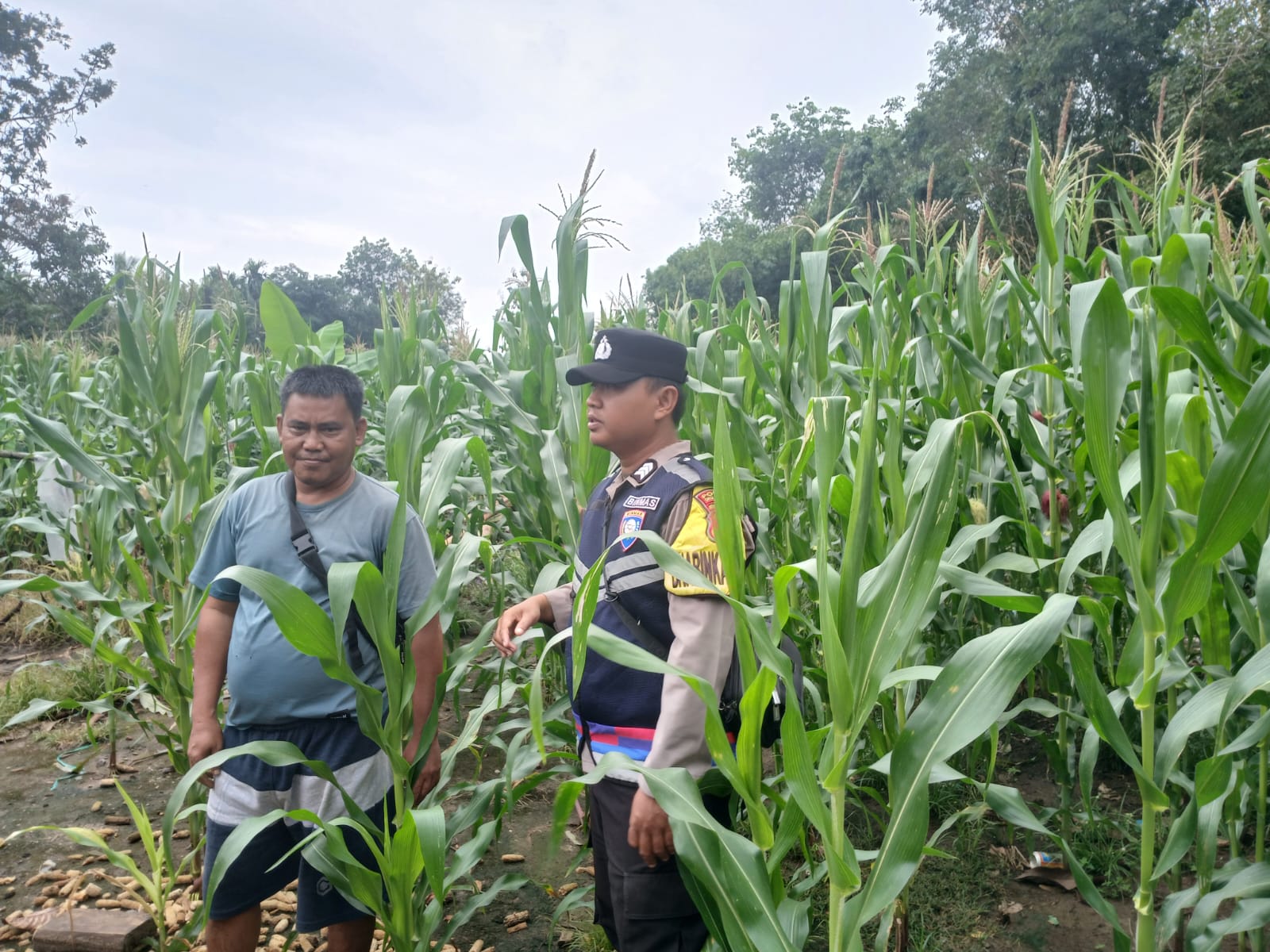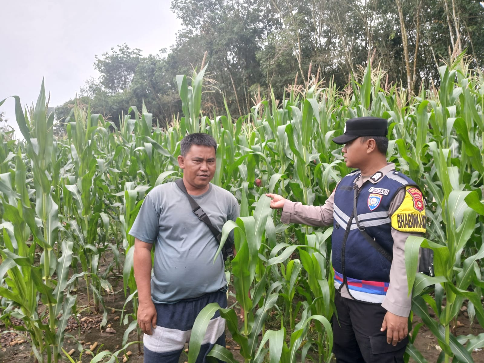 Bhabinkamtibmas Polsek Simpang Martapura Lakukan Pengecekan Lahan Jagung, Dukung Program Ketahanan Pangan