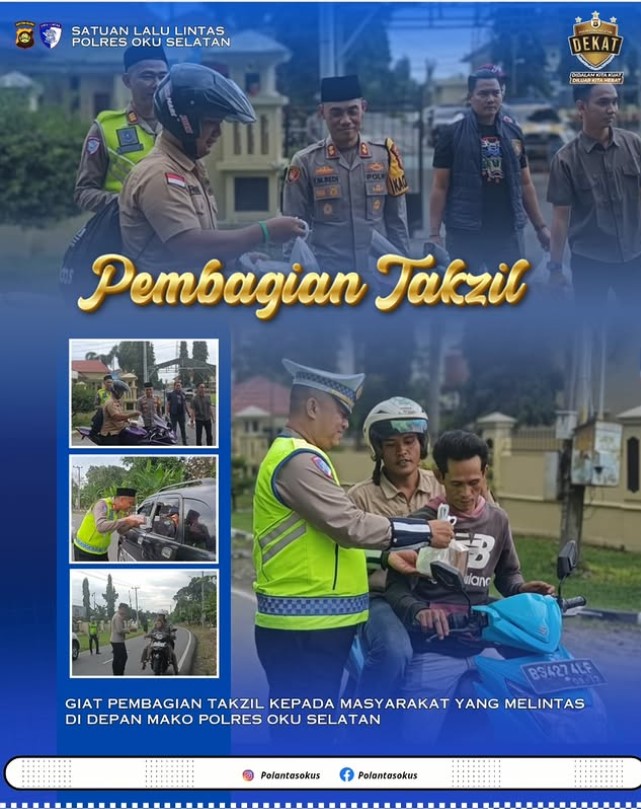 Pada Kamis, 19 Januari 2026, Kapolres OKU Selatan bersama personel dan masyarakat menggelar kegiatan berbagi takjil sebagai wujud kepedulian dan