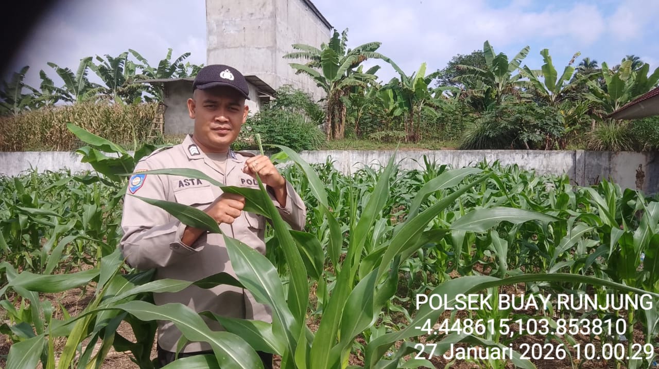 Dalam rangka mendukung program pemerintah di bidang ketahanan pangan, Anggota Bhabinkamtibmas Polsek Buay Runjung, Brigpol Asta Anggara, melaksanakan kegiatan sambang