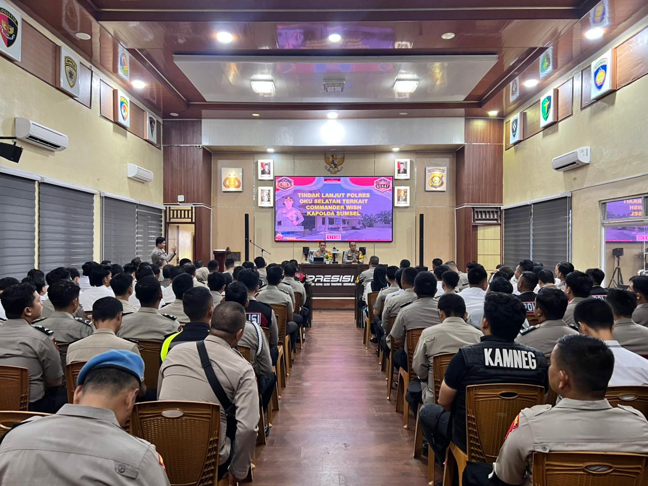 OKU Selatan – Kapolres OKU Selatan memberikan arahan kepada seluruh jajaran personel terkait tindak lanjut Commander Wish yang dicanangkan Kapolda