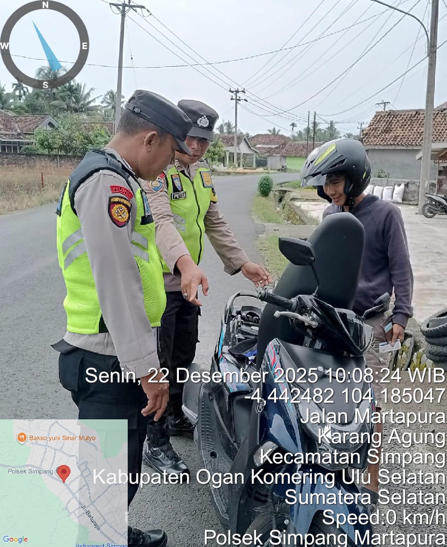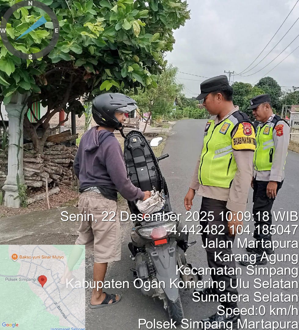 Pada hari Senin tanggal 22 Desember 2025, sekira pukul 10.00 WIB s/d selesai, Anggota Polsek Simpang Martapura melaksanakan kegiatan Patroli