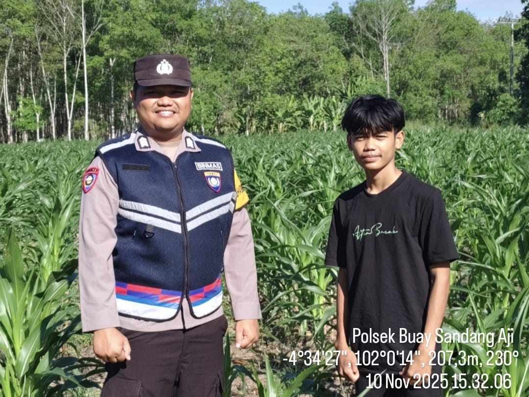BHABINKAMTIBMAS POLSEK BUAY SANDANG AJI LAKSANAKAN PENGECEKAN LAHAN JAGUNG DI DESA GUNUNG TERANG