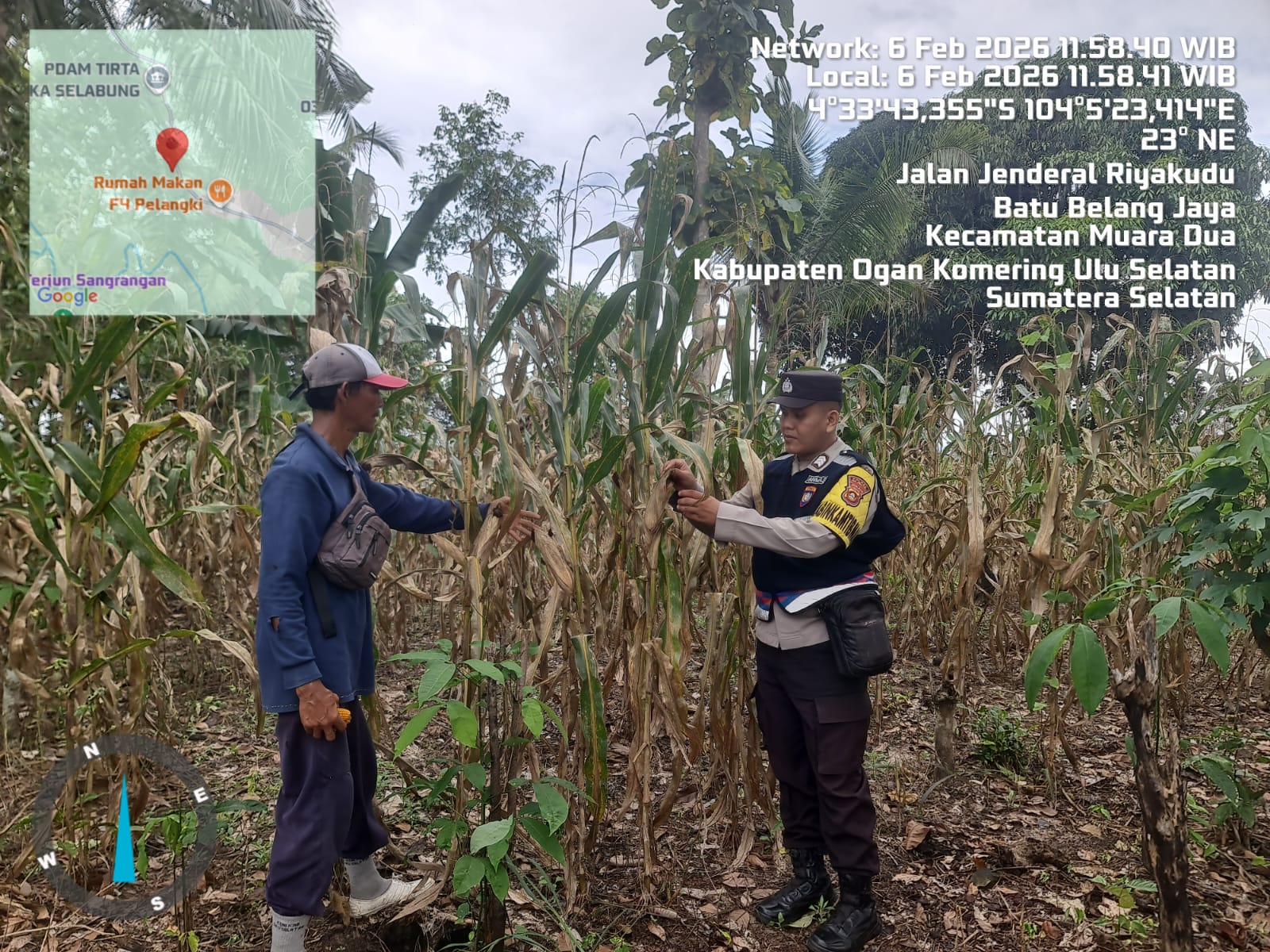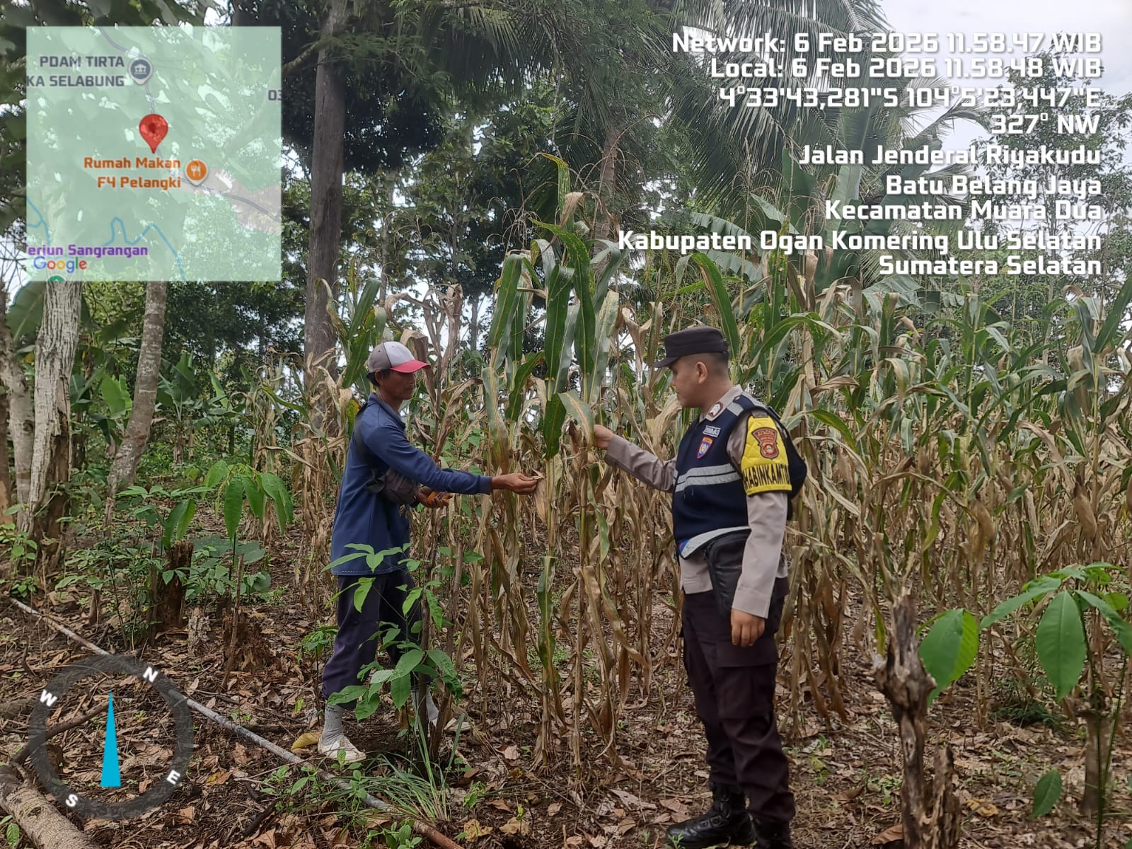 Bhabinkamtibmas Polsek Simpang Martapura Lakukan Pengecekan Lahan Jagung, Dukung Program Ketahanan Pangan
