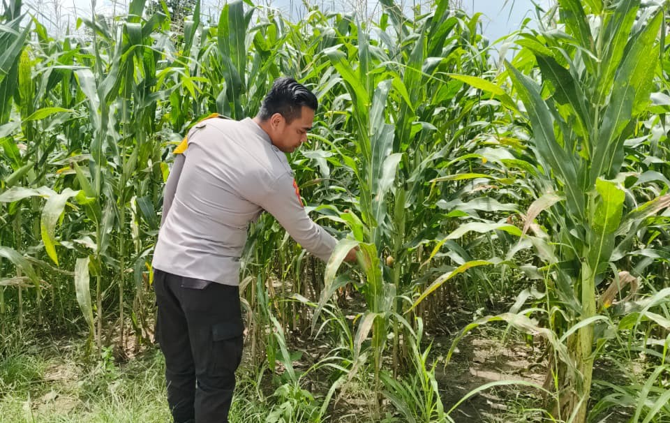 Bhabinkamtibmas Polsek Simpang Martapura Lakukan Pengecekan Lahan Jagung, Dukung Program Ketahanan Pangan