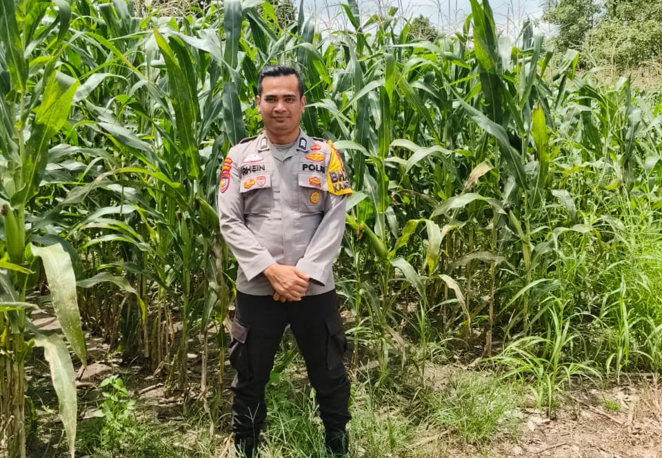 Bhabinkamtibmas Polsek Buay Pemaca Cek Lahan Jagung Dukung Program Ketahanan Pangan