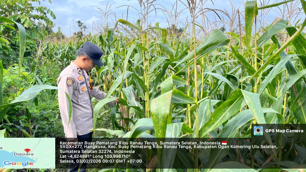 Dalam rangka mendukung program Pemerintah tentang Ketahanan Pangan, Bhabinkamtibmas Polsek Banding Agung, AIPDA Suswanto, melaksanakan kegiatan pengecekan lahan tanaman jagung