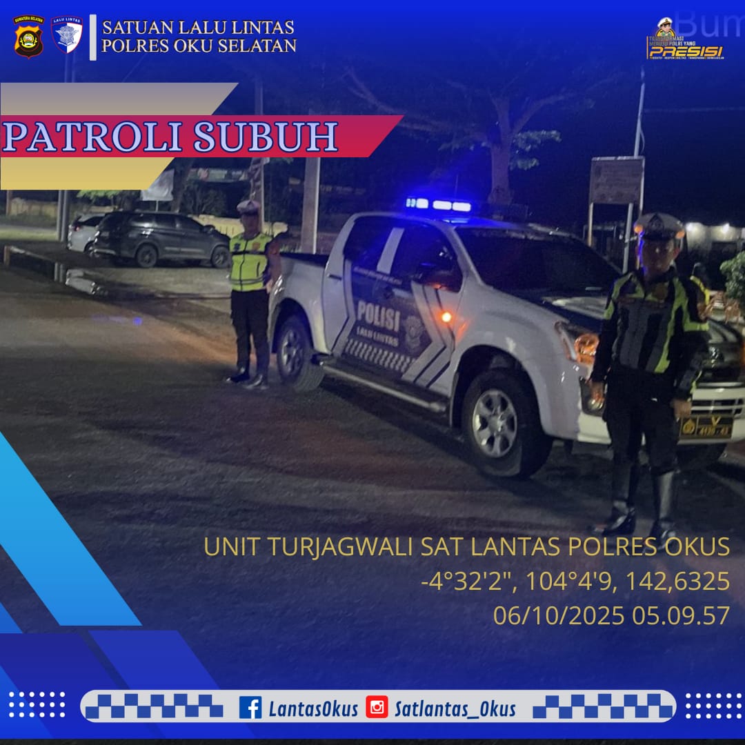 Sat Lantas Polres OKU Selatan Laksanakan Patroli Subuh Guna Ciptakan Kamseltibcarlantas dan Cegah Tindak Kriminalitas di Wilayah Hukum Polres OKU Selatan
