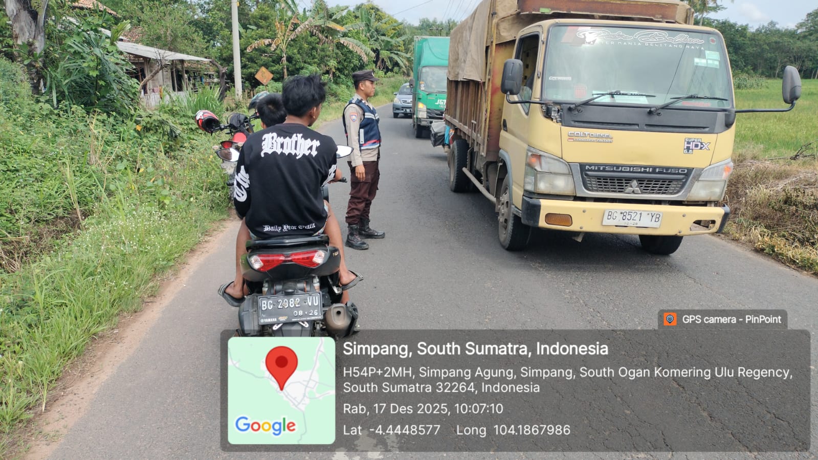 Polsek Simpang Martapura melaksanakan kegiatan patroli rutin, di Jl. Raya Baturaja–Muaradua,