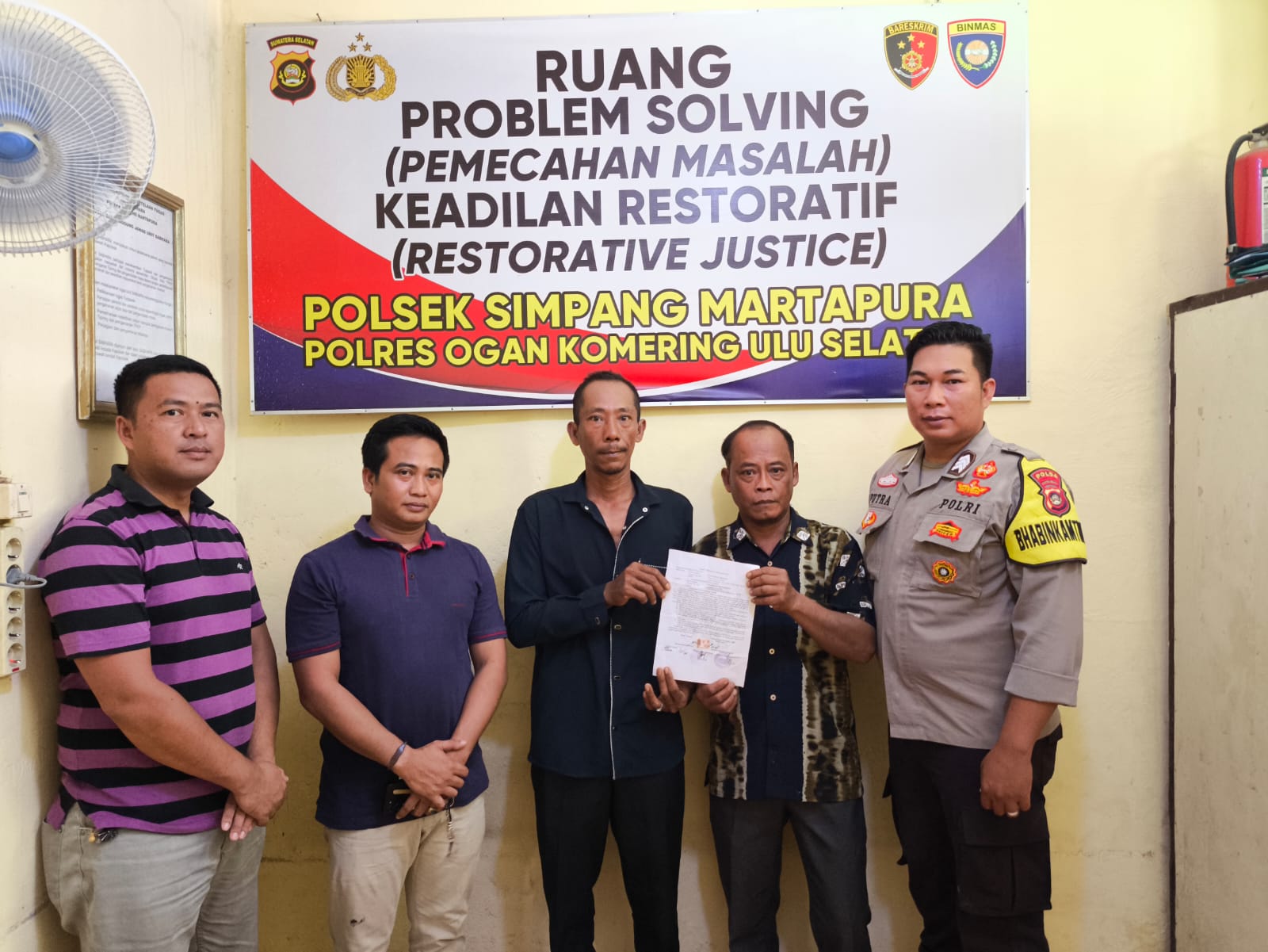 Bhabinkamtibmas Polsek Simpang Martapura, Brigpol Dora Saputra, melaksanakan kegiatan problem solving terkait perkara penganiayaan yang terjadi di Dusun IV Desa