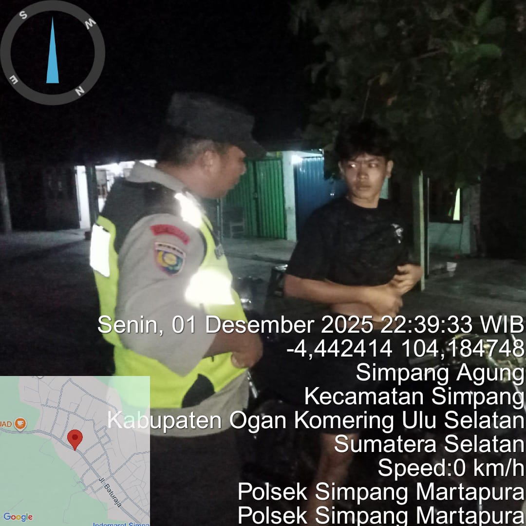 OKU Selatan — Personel Polsek Simpang Martapura melaksanakan Patroli Kegiatan Rutin Yang Ditingkatkan (KRYD) di wilayah Kecamatan Simpang, khususnya pada