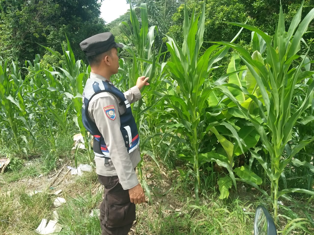 BRIGPOL DORA SAPUTRA LAKUKAN PENGECEKAN LAHAN JAGUNG DI DESA DAMARPURA DALAM RANGKA DUKUNG PROGRAM KETAHANAN PANGAN