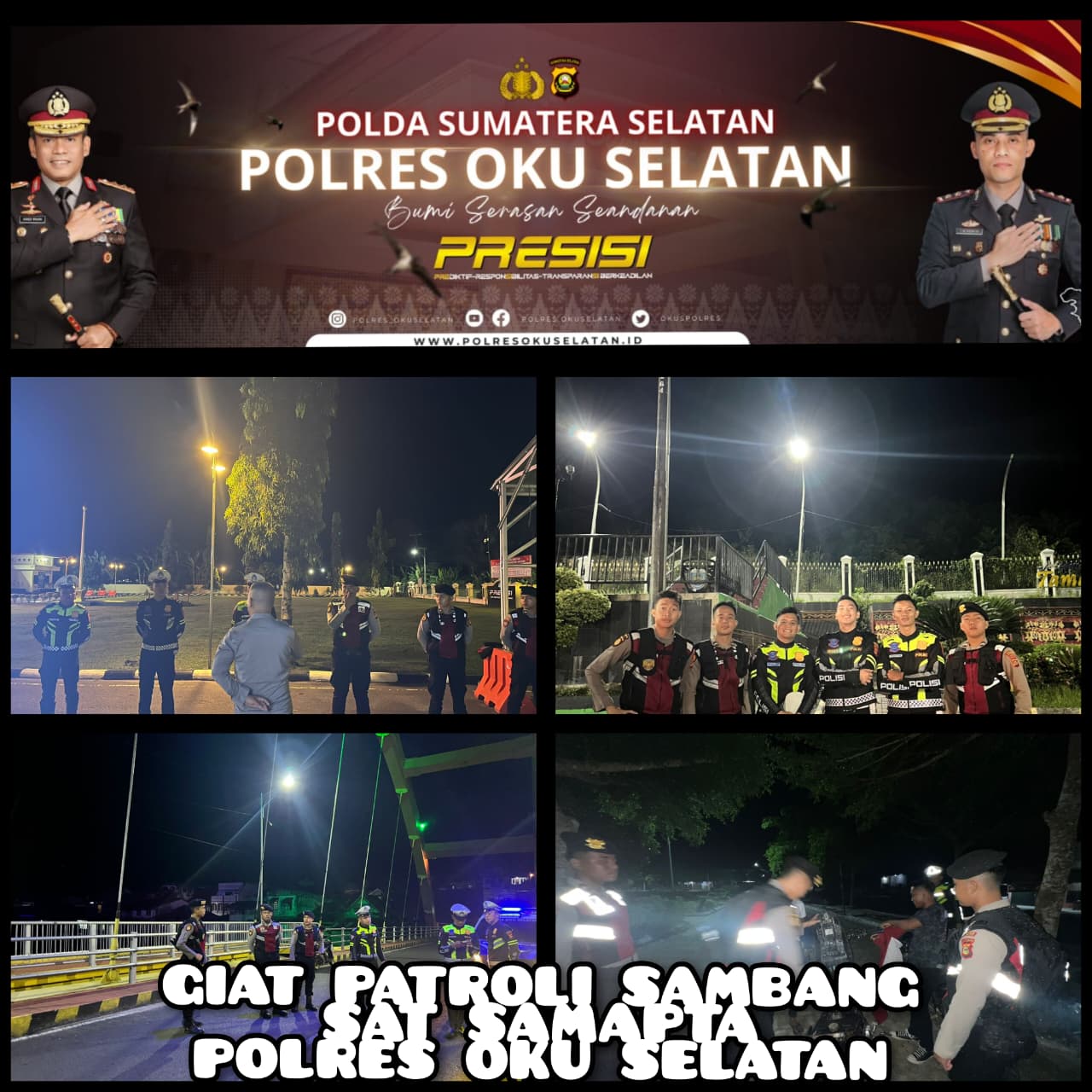 Personel Sat Samapta dan Sat Lantas Polres OKU Selatan melaksanakan giat Patroli Gabungan di wilayah Kecamatan OKU Selatan. Kegiatan patroli