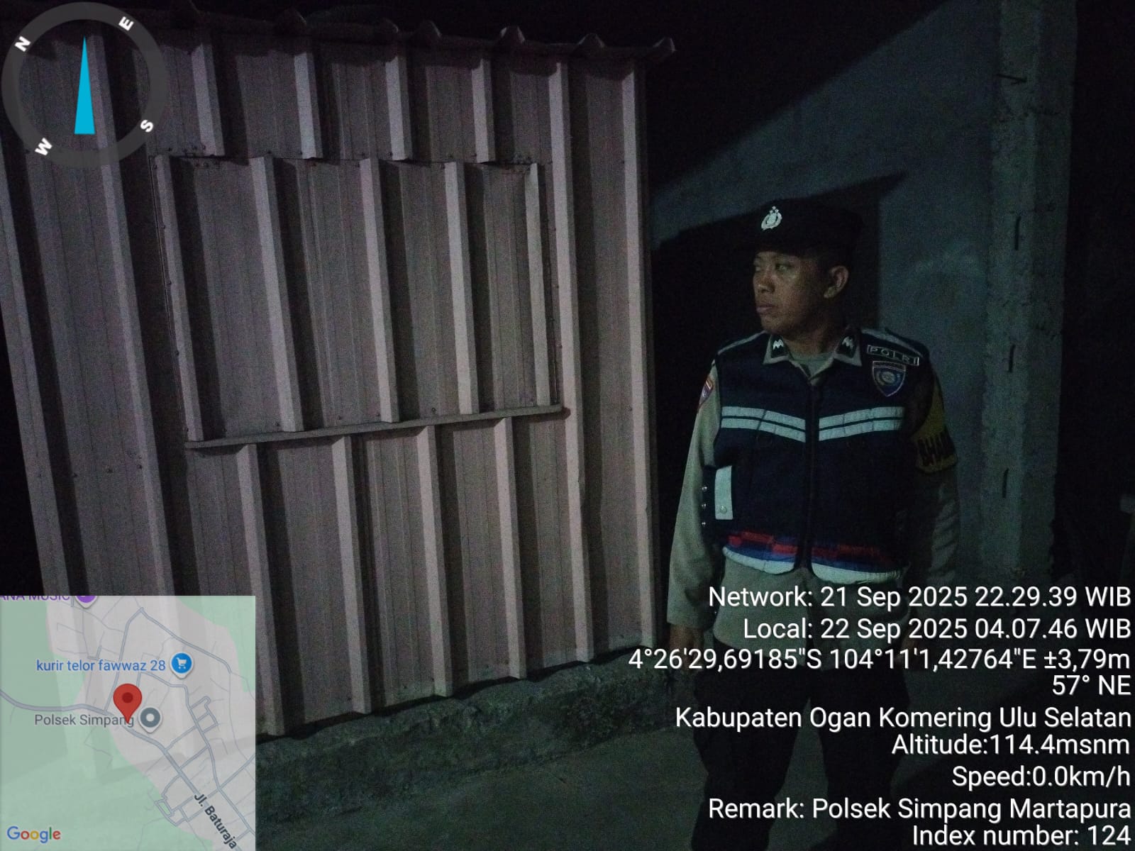 OKU SELATAN – Anggota Polsek Simpang Martapura melaksanakan giat Patroli Kegiatan Rutin Yang Ditingkatkan (KRYD) Subuh pada hari ini dengan