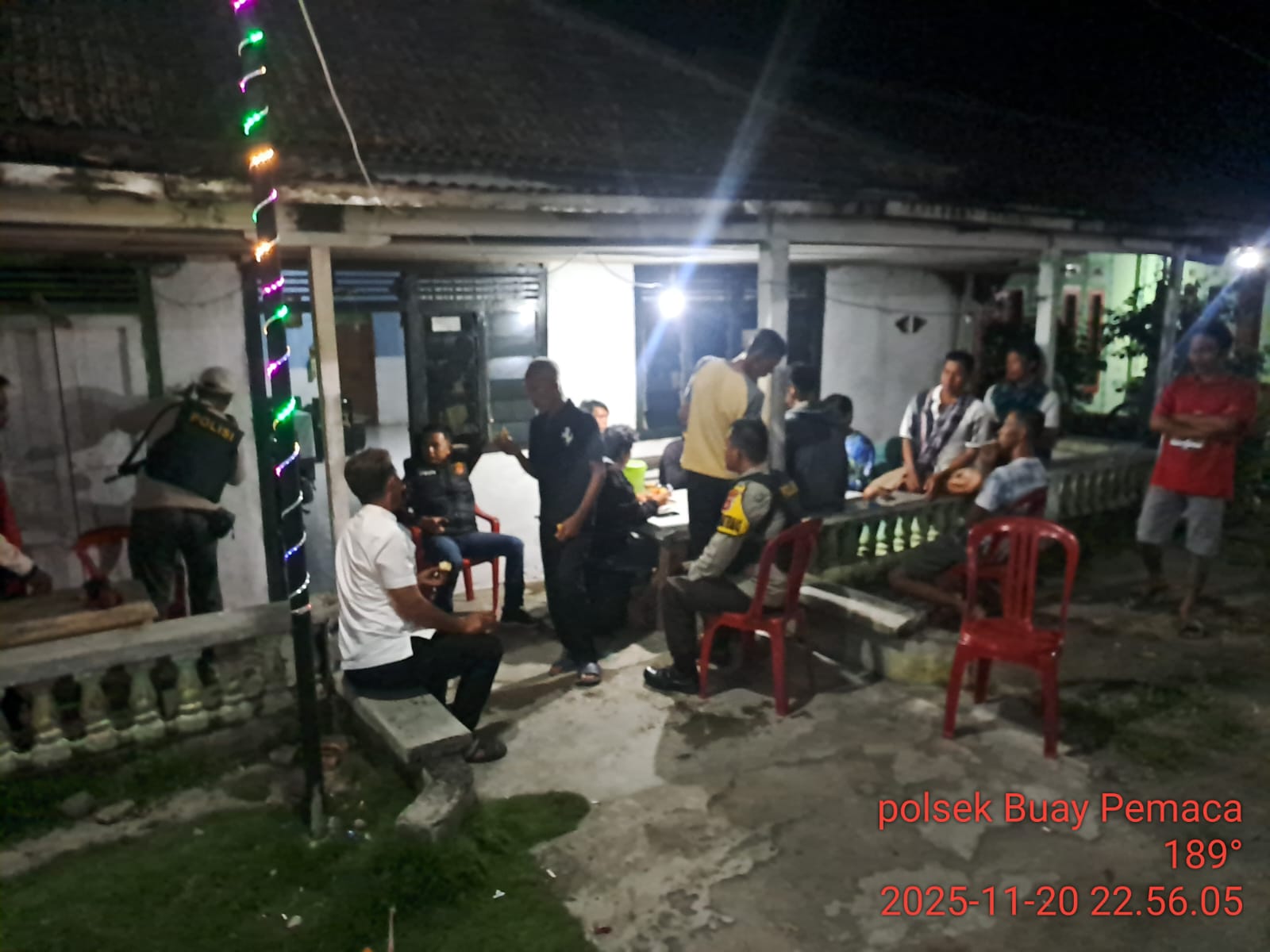 Buay Pemaca – Kapolsek Buay Pemaca bersama anggota melaksanakan kegiatan patroli dialogis sekaligus kontrol pos ronda di Desa Kota Way