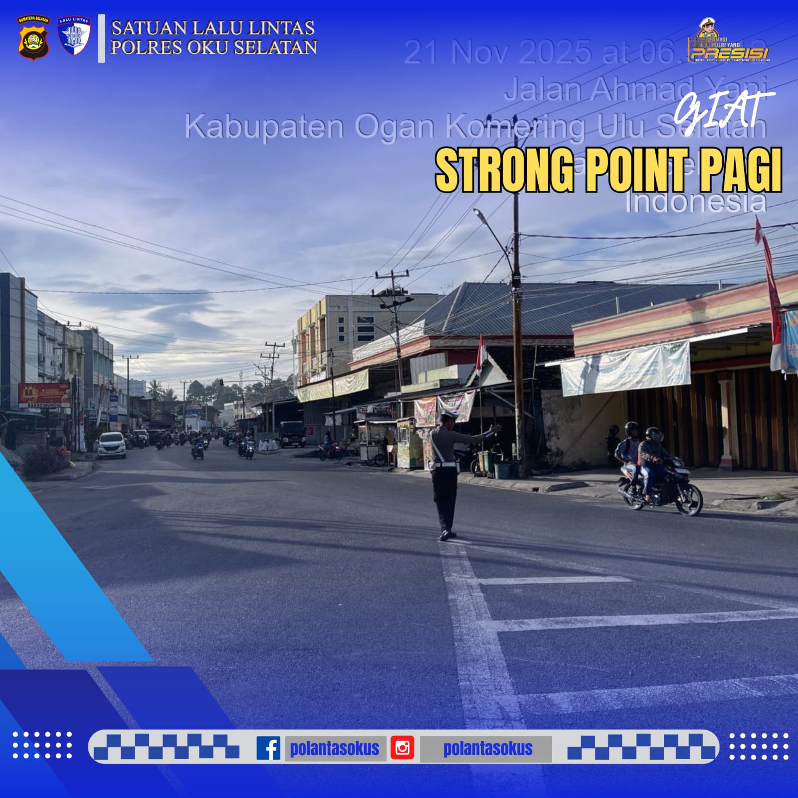 Pada hari ini, personel Satuan Lalu Lintas Polres OKU Selatan melaksanakan giat pengaturan pagi di berbagai titik ploting yang telah