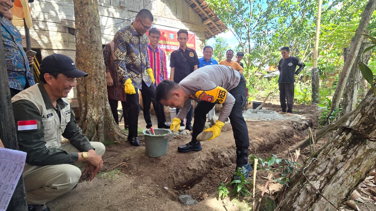 Kunjungan Kapolres OKU Selatan dan PJU dalam Rangka Bhakti Sosial Bedah Rumah Program Polda Sumsel di Desa Gunung Terang, Kecamatan Buay Sandang Aji