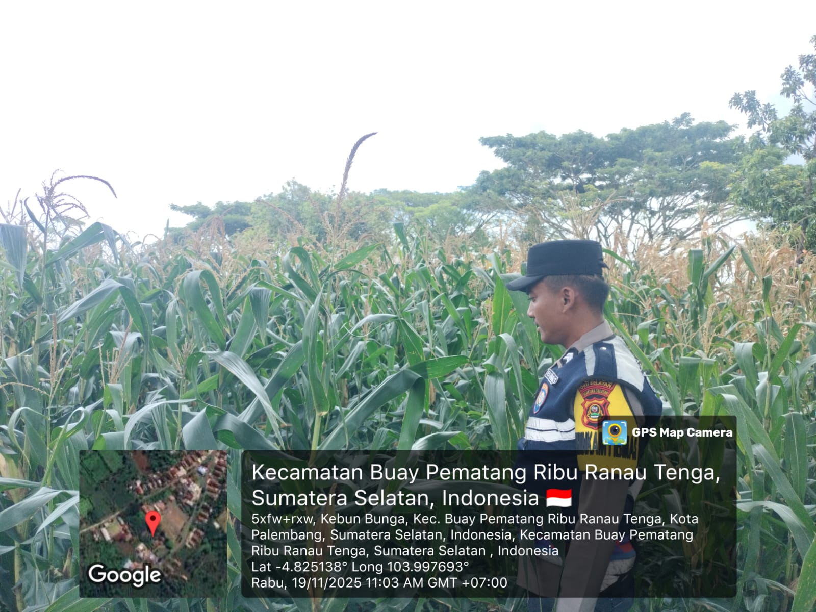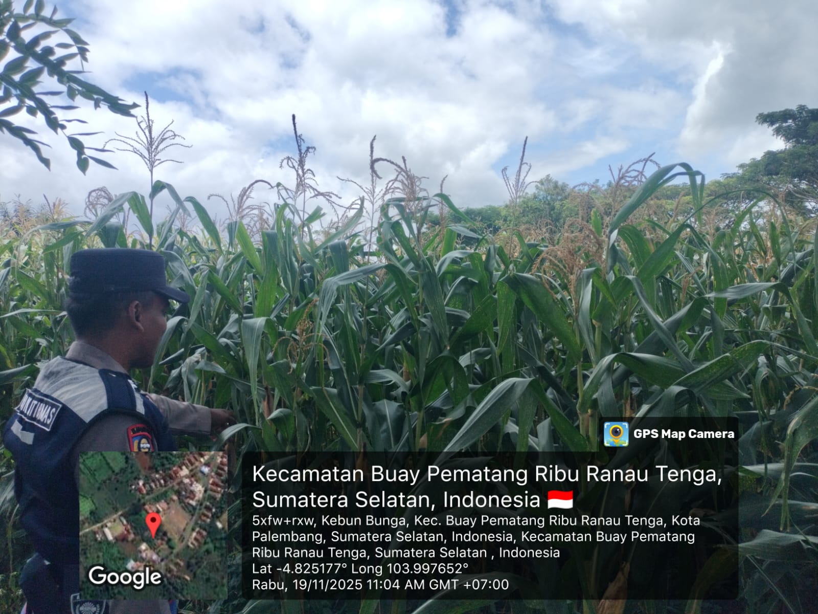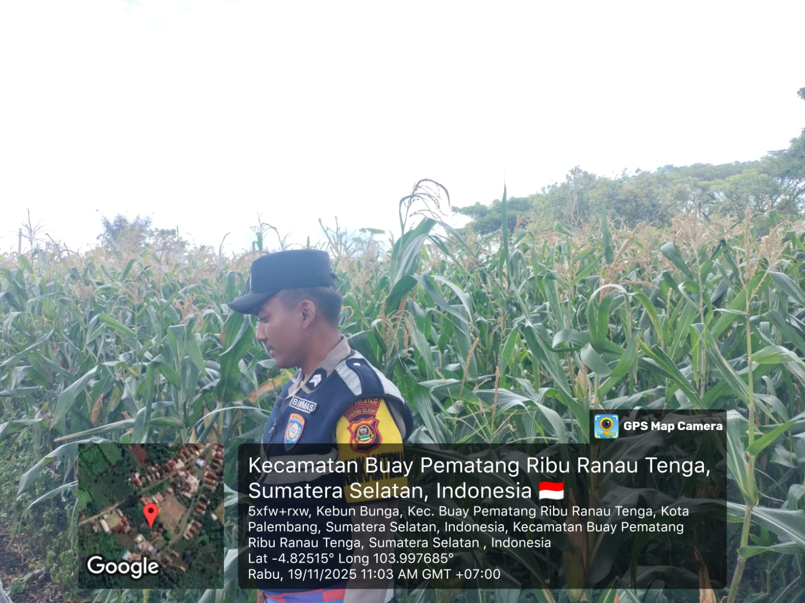 Banding Agung – Bhabinkamtibmas Polsek Banding Agung, Briptu Slamet Muhidin, melaksanakan kegiatan pengecekan ketahanan pangan berupa tanaman jagung milik warga