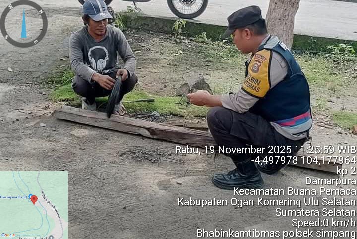 OKU SELATAN — Guna meningkatkan keamanan dan ketertiban masyarakat (Kamtibmas) di lingkungan pemukiman warga, Bhabinkamtibmas Polsek Muaradua, AIPDA Pitriadi, melaksanakan