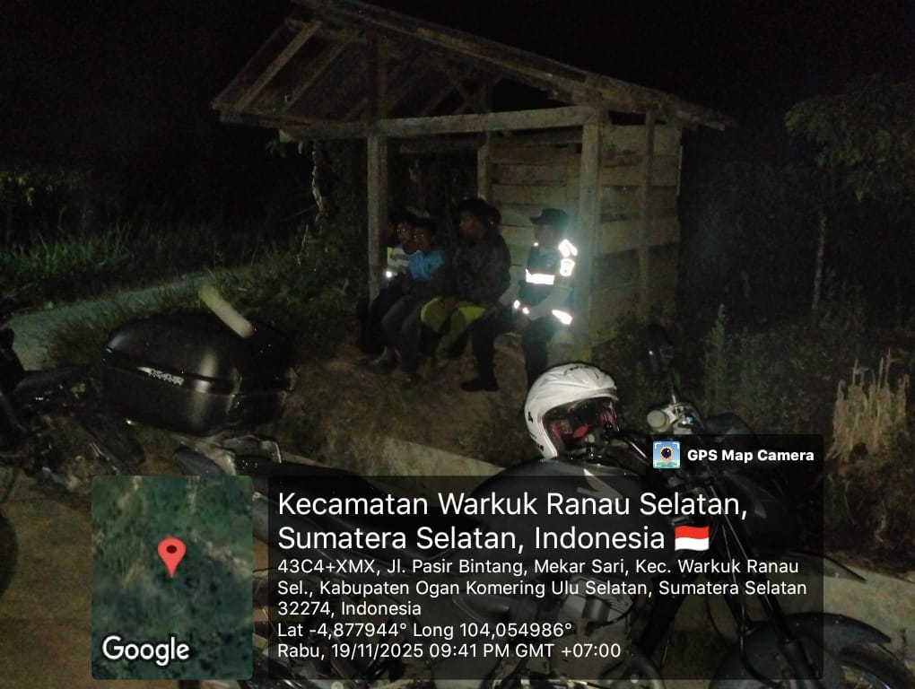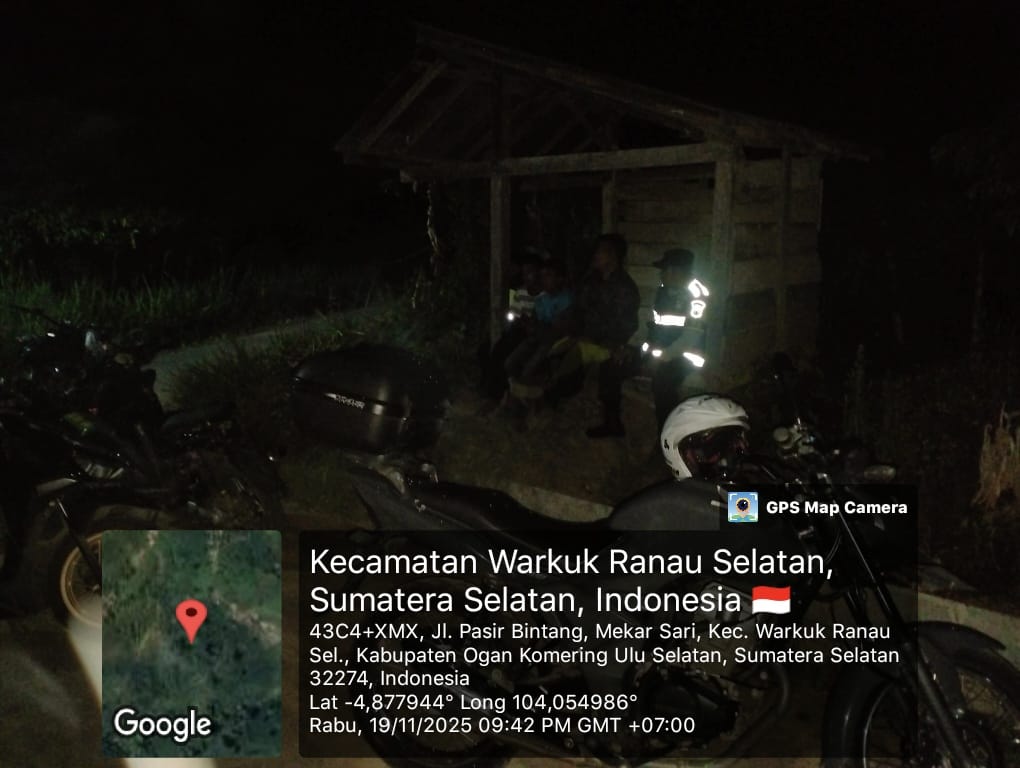 Jaga Kamtibmas Malam Hari, Bhabinkamtibmas Polsek Muaradua Cek Pos Satkamling