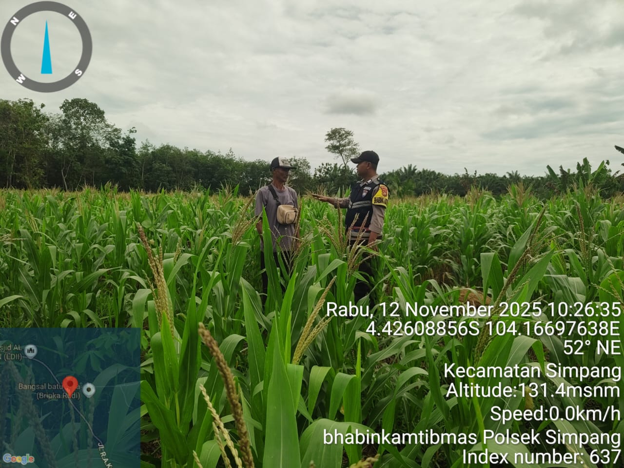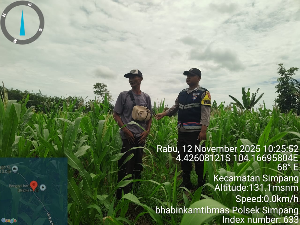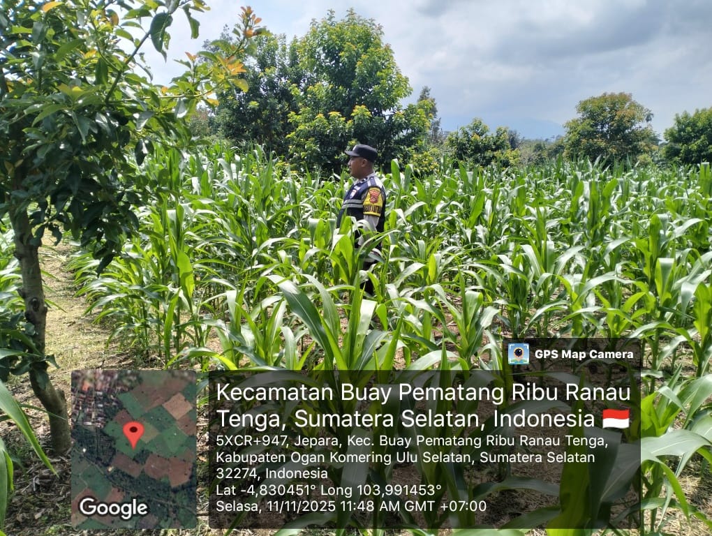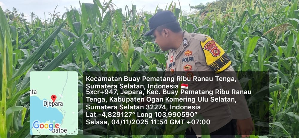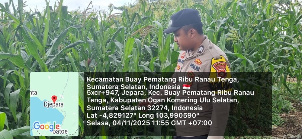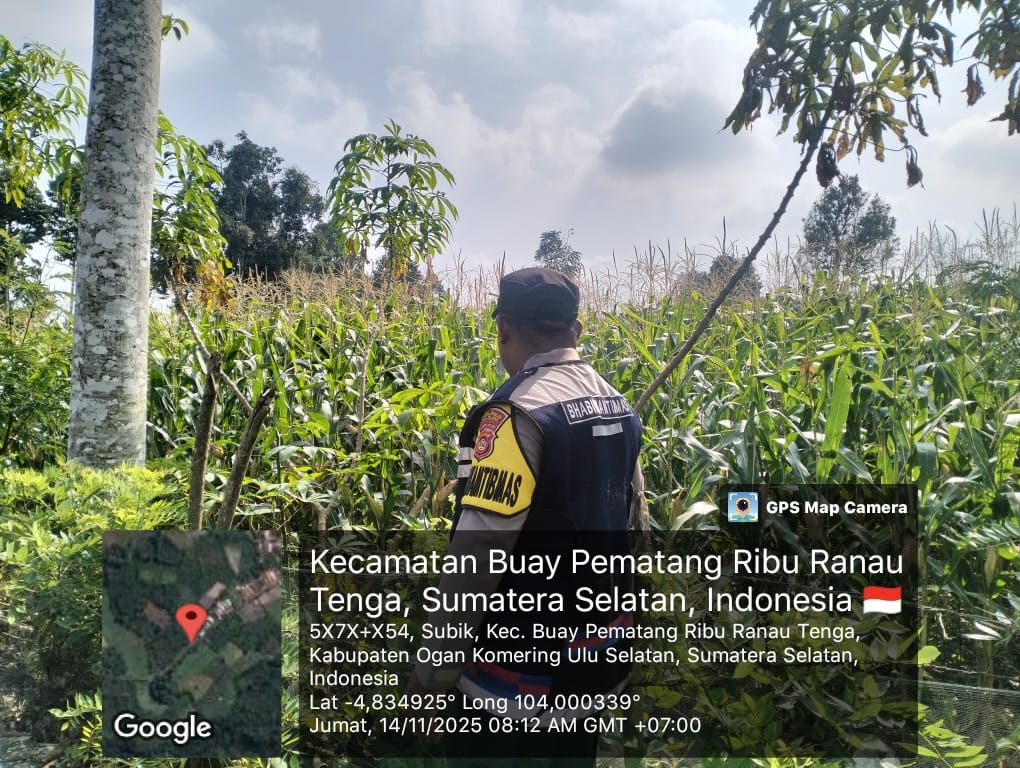Pada hari Kamis, 13 November 2025, Bhabinkamtibmas Polsek Simpang Martapura, Brigpol Fetriyanto, melaksanakan kegiatan pengecekan lahan tanaman jagung di wilayah