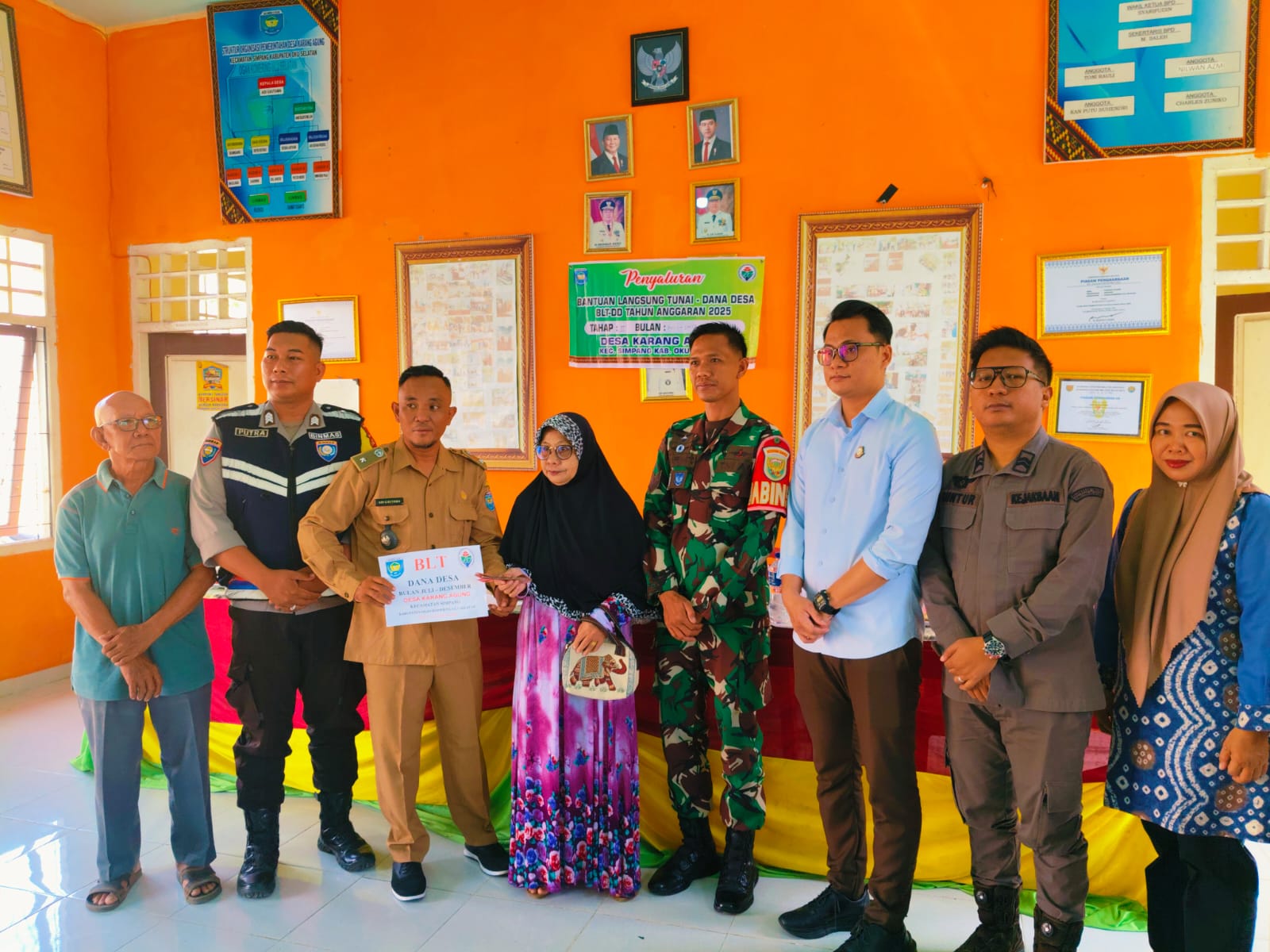 Simpang, OKU Selatan — Bhabinkamtibmas Polsek Simpang Martapura Brigpol Dora Saputra, S.H melaksanakan giat menghadiri kegiatan Penyerahan Bantuan Langsung Tunai