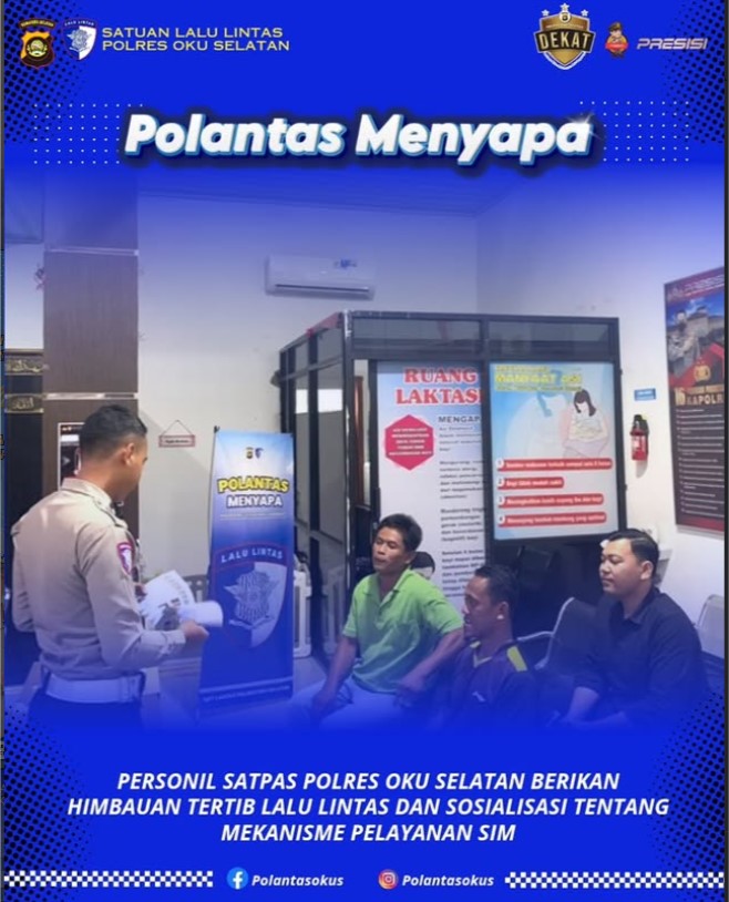 Giat Personil Satpas Polres OKU Selatan Berikan Himbauan Tertib Lalu Lintas dan Sosialisasi Mekanisme Penerbitan SIM
