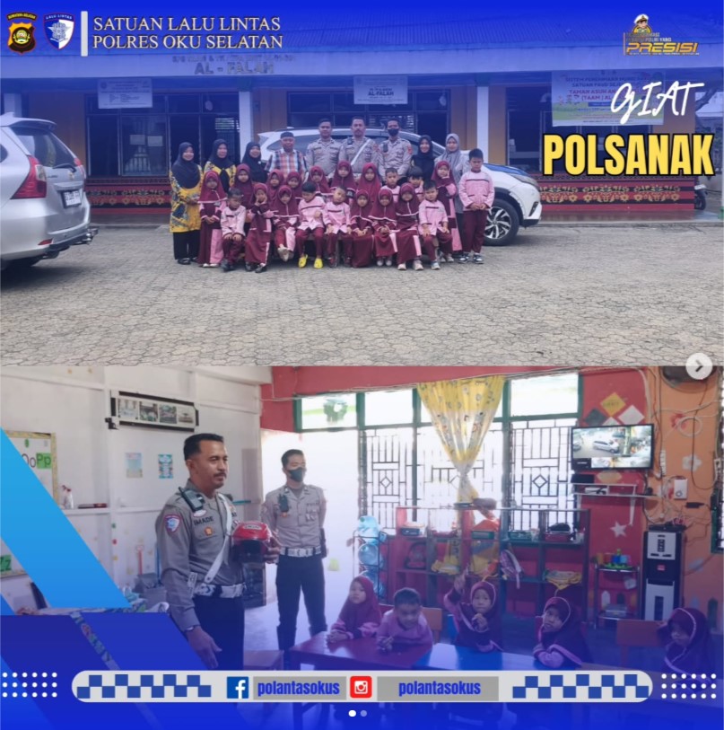 Personil Satuan Lalu Lintas (Sat Lantas) Polres OKU Selatan melaksanakan kunjungan edukatif ke Taman Asuh Anak Muslim (TAAM) Alfalah Muaradua