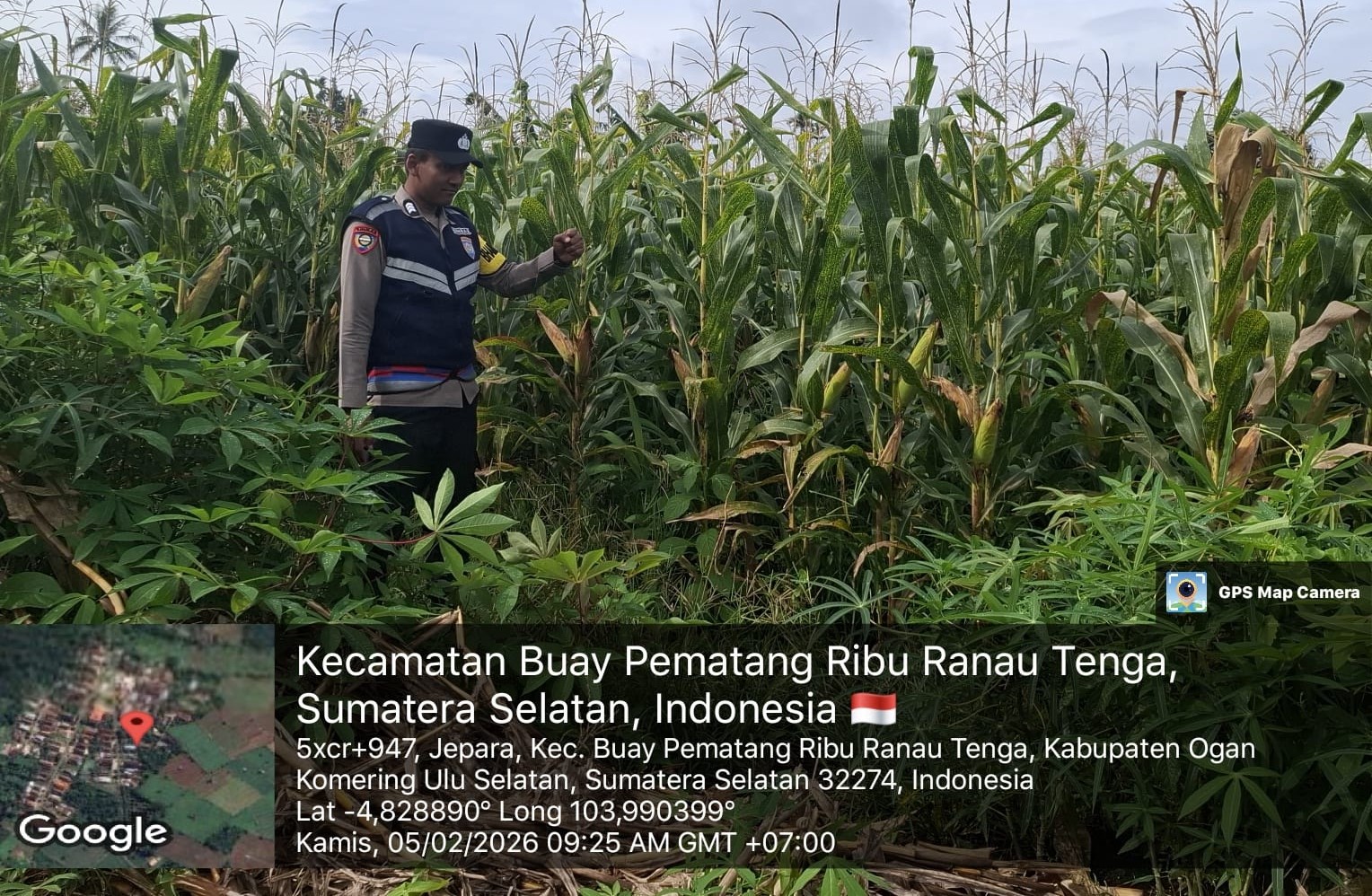 Bhabinkamtibmas Polsek Banding Agung Aipda Suswanto melaksanakan giat pengecekan lahan tanaman jagung di Desa Subik, Kecamatan BPR Ranau Tengah, Kabupaten