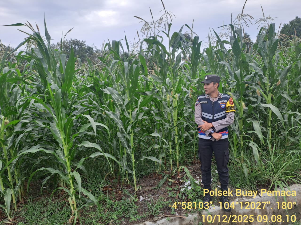 Dukung Swasembada Pangan, Bhabinkamtibmas Buay Pemaca Lakukan Pengecekan Lahan Jagung