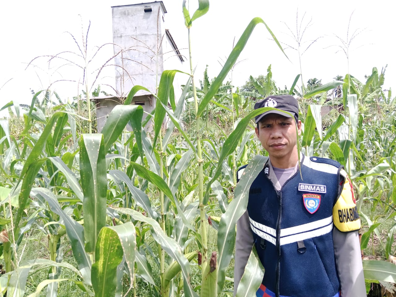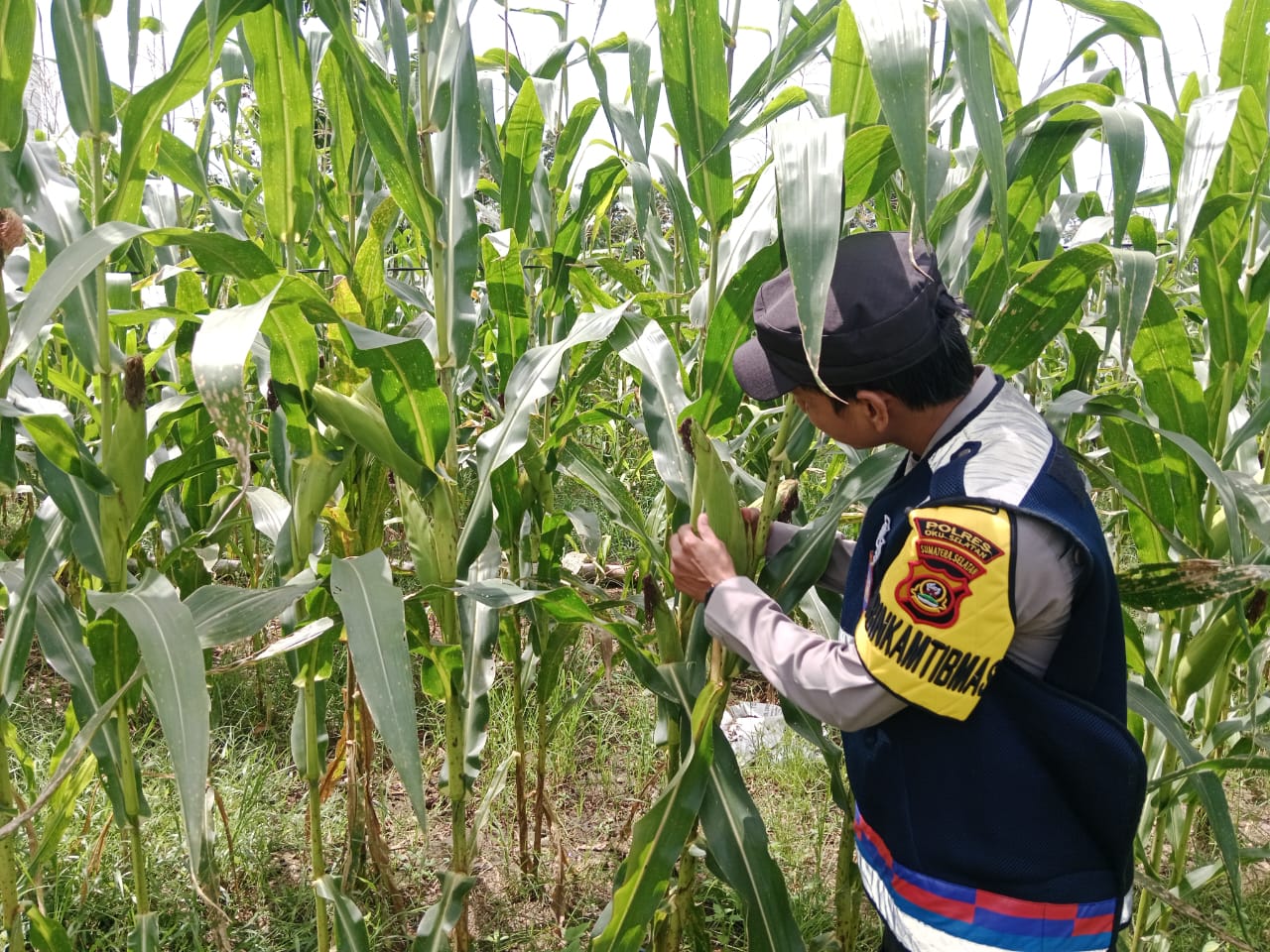 Bhabinkamtibmas Kepolisian Sektor Banding Agung, Briptu Slamet Muhidin, melaksanakan kegiatan pengecekan ketahanan pangan program pemerintah berupa tanaman jagung milik warga,