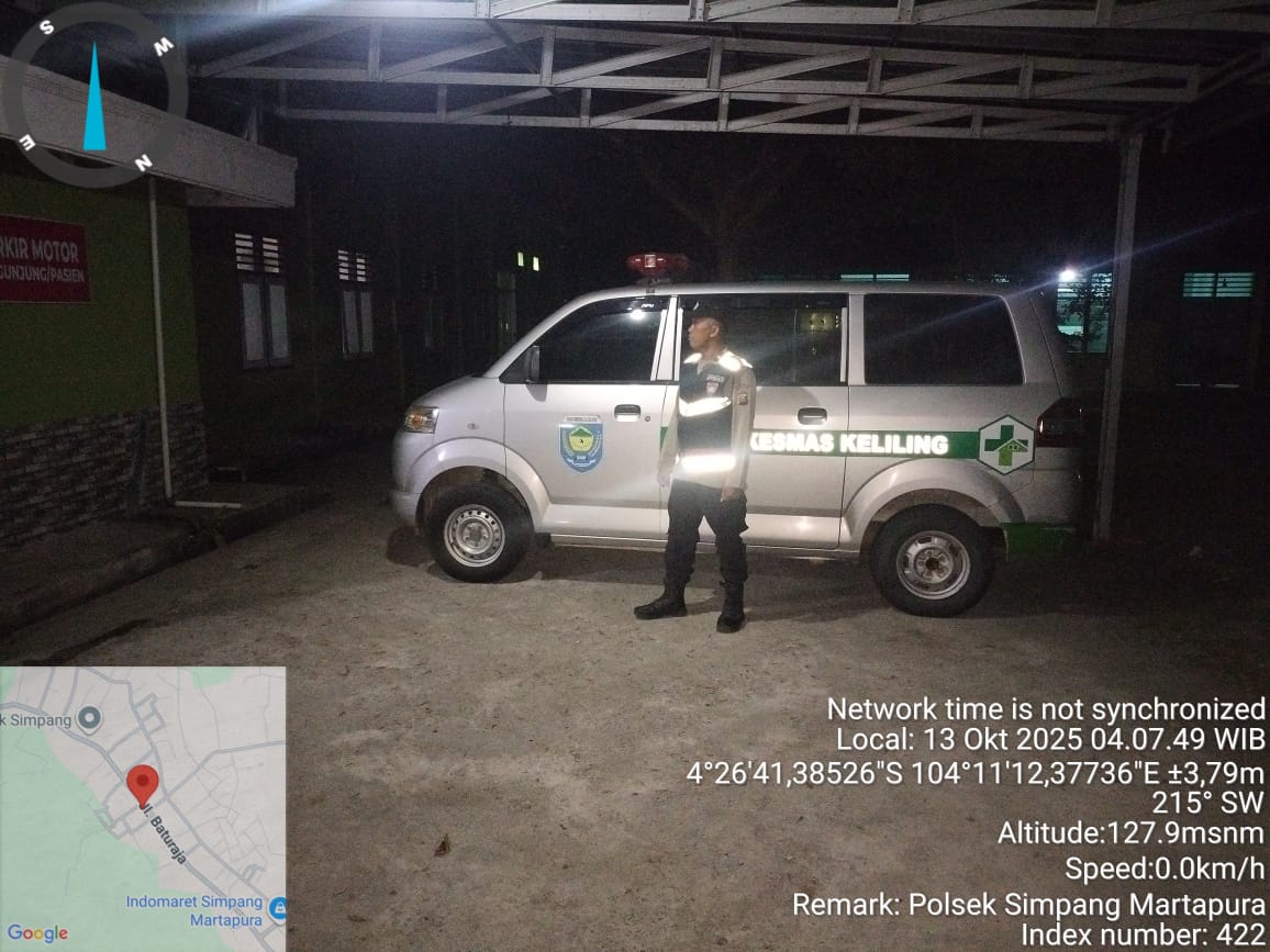 Simpang Martapura – Senin (13/10/2025), personel Polsek Simpang Martapura melaksanakan kegiatan Patroli Kegiatan Rutin Yang Ditingkatkan (KRYD) pada waktu subuh